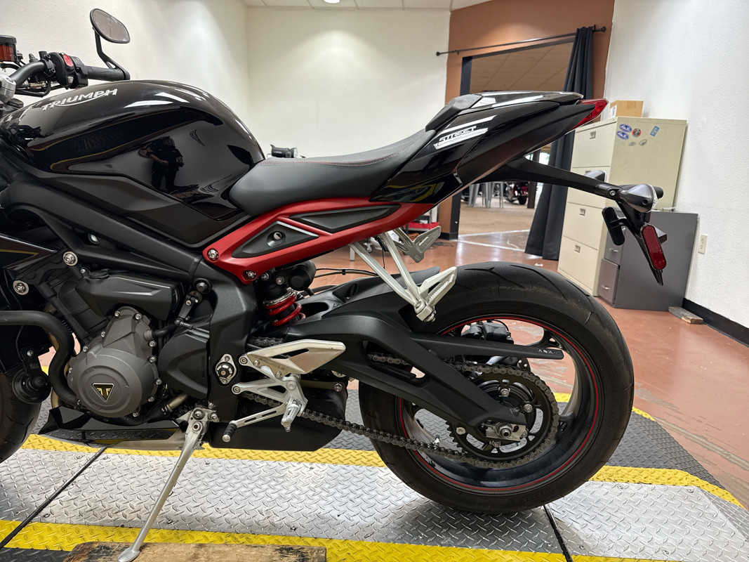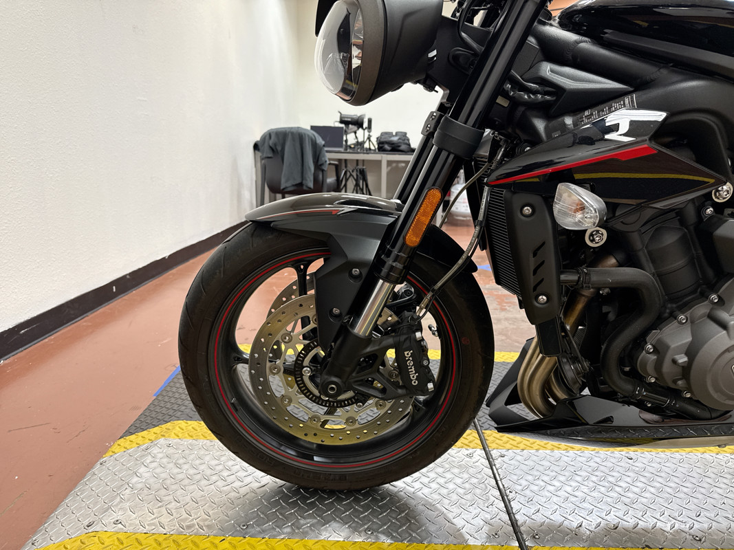 The 2018 Triumph STREET TRIPLE R motorcycle is a striking example of British engineering and design, perfect for those who crave adventure on two wheels. This used motorcycle, with only 205 miles on the odometer, is practically new and ready to hit the road. Its sleek black exterior exudes a sense of mystery and power, making it a head-turner wherever you go.