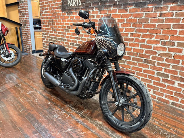 2019 Harley-Davidson® Sportster® Iron 1200™THE THRILL OF RIDING STRIPPED TO ITS BARE ESSENCEA modern take on what’s been putting big grins on the faces of Sportster® motorcycle riders for decades.Features may include:THROWBACK STYLING. THROW YOUR HEAD BACK POWER.1200CC EVOLUTION™ ENGINE1200cc at your command to deliver tons of torque for an unforgettably fun ride.BLACKED-OUT FINISHESBlacked-out finishes from its powertrain to its air cleaner cover to its exhaust. Equipped to take on the urban grid.THROWBACK 70’S CUSTOM TANK ARTAuthentic bold 70’s-inspired tank graphic shows the bike’s retro roots.CAFÉ SOLO SEATSit "in" the bike while your hands and feet reach naturally to the controls. This seat pays homage to the heritage of the iconic Cafe Racer style.BLACK MINI-APE HANDLEBARSFists in the wind attitude with a conservative rise and bend for rider comfort.9-SPOKE CAST ALUMINUM WHEELSNine-spoke wheels that are black as night from rim to rubber to complement the Dark Custom look.FIXED SPEED SCREENThe fixed black speed screen leaves no question as to the attitude of the motorcycle. Get behind it and hang on.
