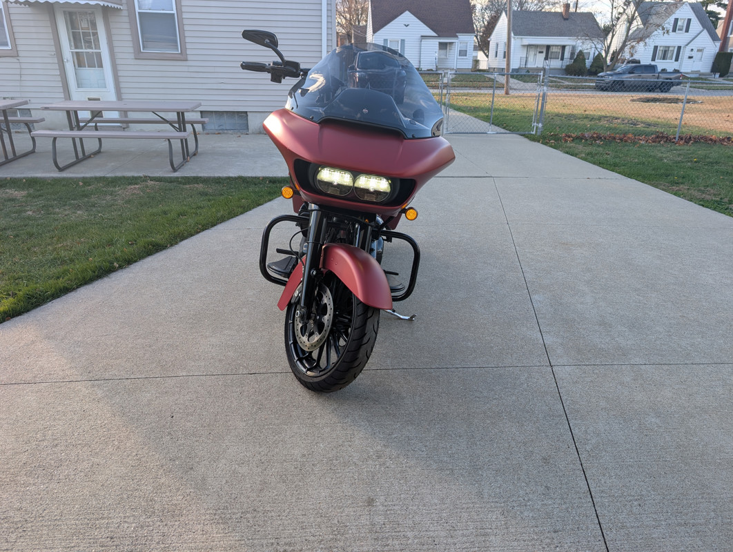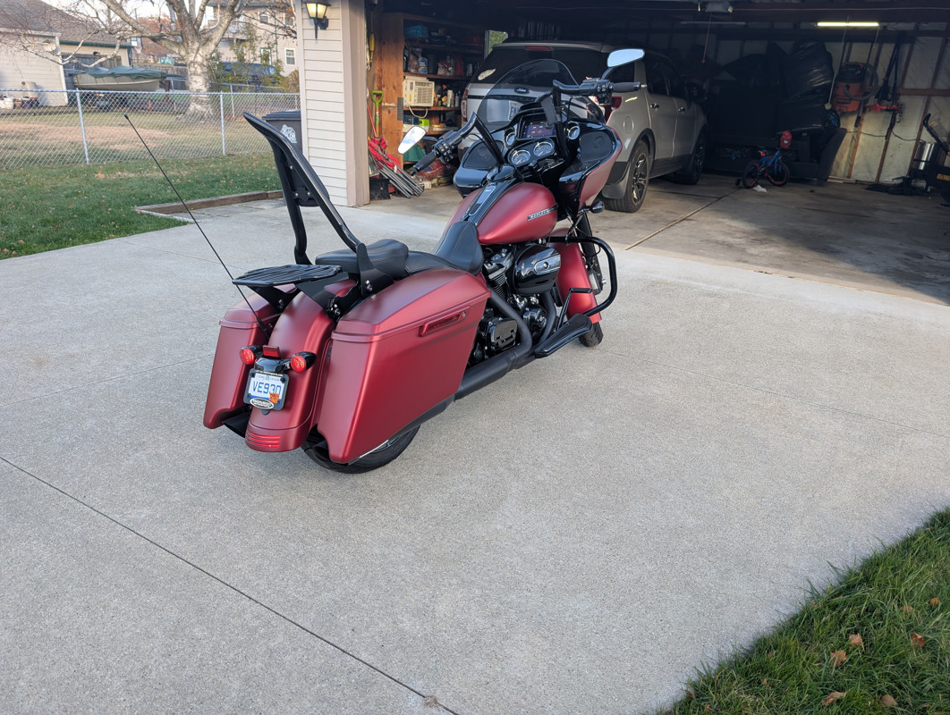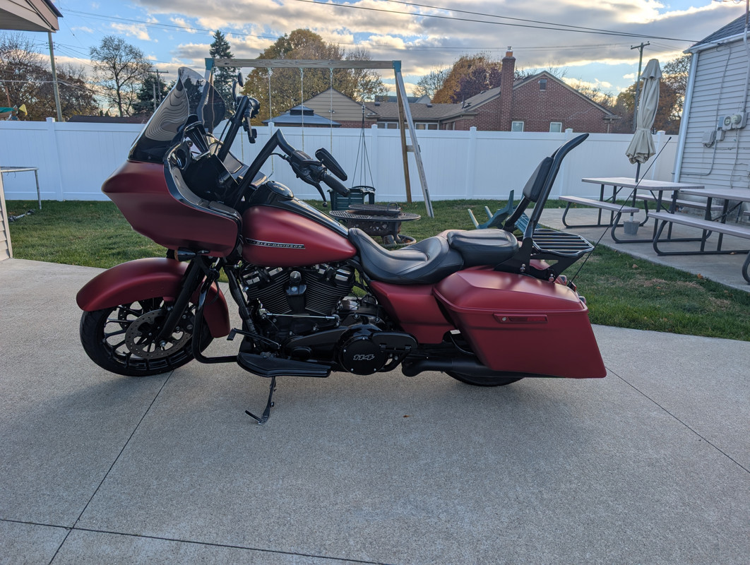 Runs great, new handlebars and Klockworks windscreen installed. Also have smaller Klockworks windshield included. Apple/android auto compatible with new fairing speakers installed. In the rarer Wicked red Denim color. (Matte red)