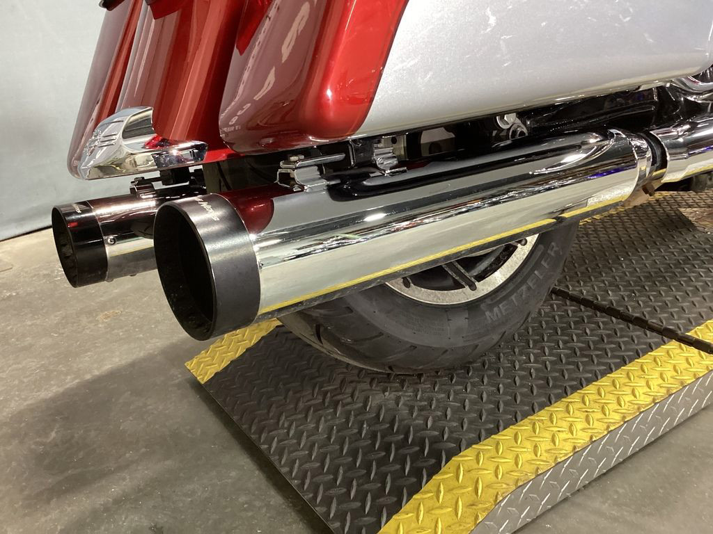 ONLY 16,163 MILES, 114" MOTOR, KHROME WERKS EXHAUST, UPGRADED BIG HANDLEBARS, NAVIGATION, ABS, AUDIO, CRUISE CONTROL, BLUETOOTH, SECURITY, HEATED GRIPS, HD DAYMAKER LED HEADLIGHTS, LED BAG FILLERS, WIND DEFLECTORS, HEAT DEFLECTORS, 6 SPEED TRANS, AND NEW TIRES! CLEAN AND LOADED LOWER MILEAGE 2-TONE BAGGER! THERE IS NO TOUR PAK WITH THIS BIKE. THE LEFT SIDE BAG HAS SCRATCHES THAT HAVE BEEN TOUCHED UP.
