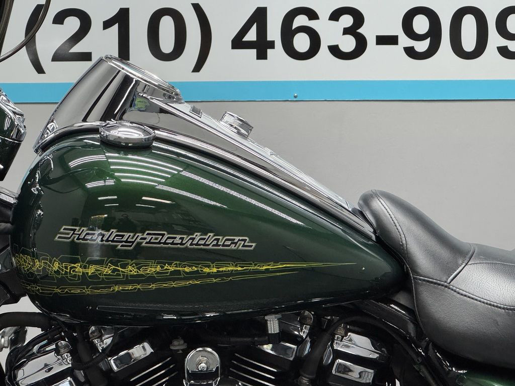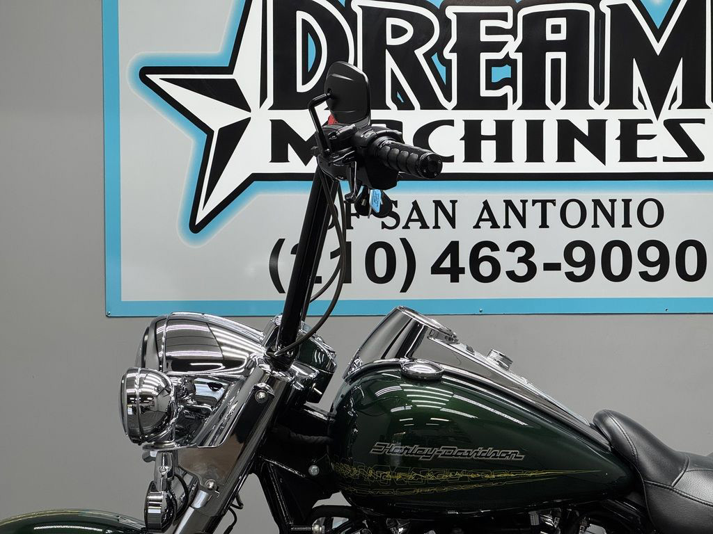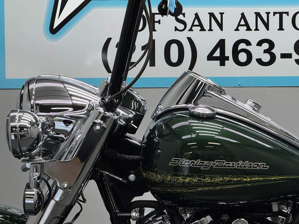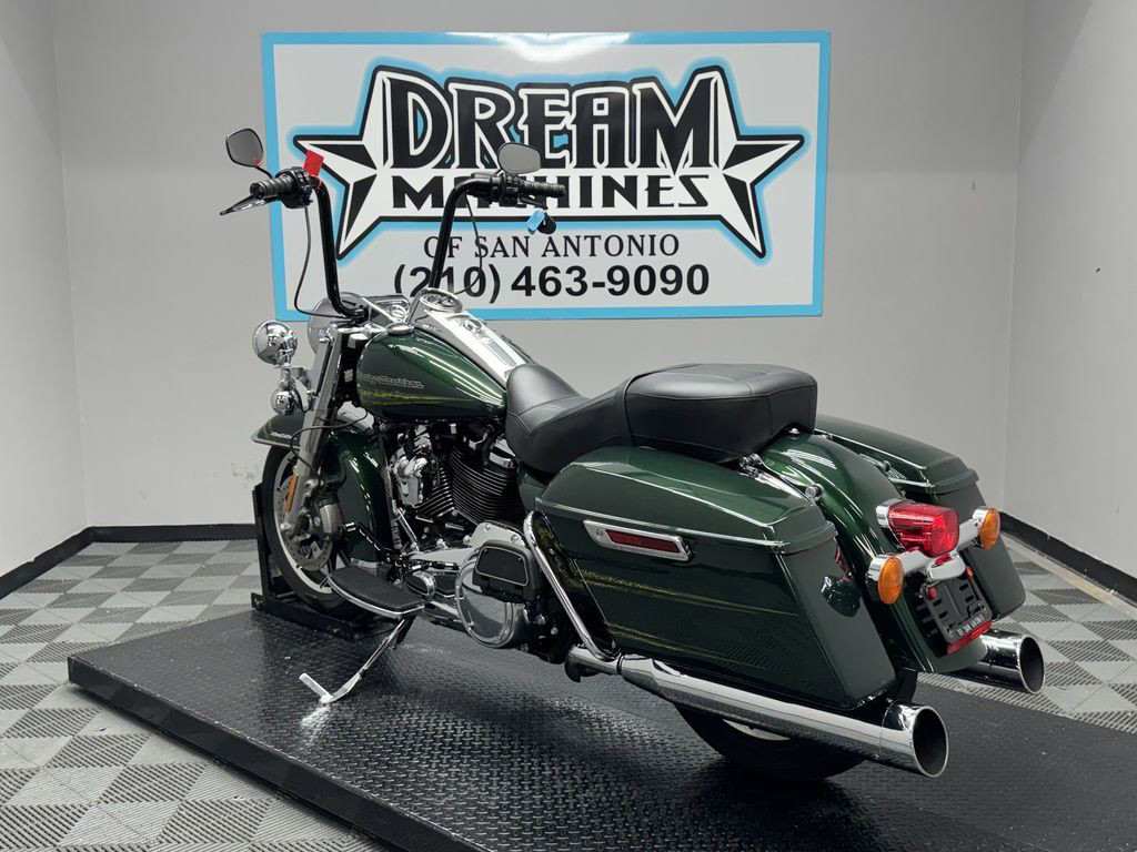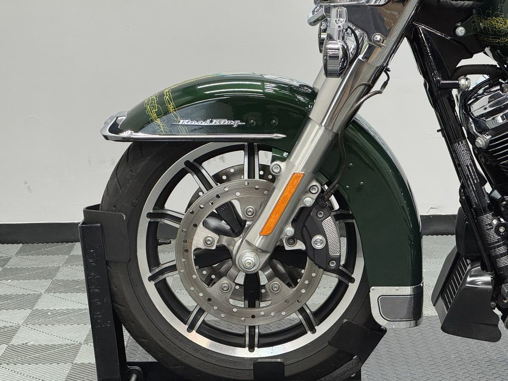 *BOOK VALUE IS $13,353 SHIPPING, LEASING, FINANCING AND EXTENDED WARRANTY MAY BE AVAILABLE! YOU ARE LOOKING AT A 2019 HARLEY DAVIDSON ROAD KING (FLHR) WITH 9,861 MILES ON IT. IT IS KINETIC GREEN IN COLOR AND POWERED BY A 1746CC (107") FUEL INJECTED MILWAUKEE EIGHT ENGINE AND 6 SPEED TRANSMISSION. THE BIKE COMES WITH CRUISE CONTROL, 2 KEYS, 2 FOBS AND FACTORY SECURITY SYSTEM. THERE ARE SOME EXTRAS ON THE BIKE WHICH INCLUDE SCREAMIN' EAGLE SLIP-ON MUFFLERS ($674.95), STAGE 1 AIR INTAKE ($139.95), HAMMOCK SEAT ($649.95), LED HEADLIGHT ($399.95), LED PASSING LAMPS ($199.95), APE HANGER BARS ($294.95), GRIPS ($79.95), LEVERS ($99.95) AND COMBINATION ANALOG SPEEDOMETER/TACHOMETER ($399.95). THERE ARE NO SCRATCHES, DENTS, OR DINGS THAT I CAN FIND WITH THE EXCEPTION OF SMALL SCRATCHES ON THE TANK AND REAR FENDER. THE CHROME AND ALUMINUM ARE IN GOOD CONDITION. THE TIRES HAVE GOOD TREAD LEFT ON THEM.