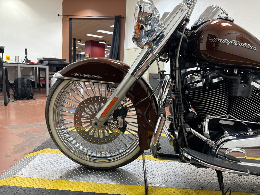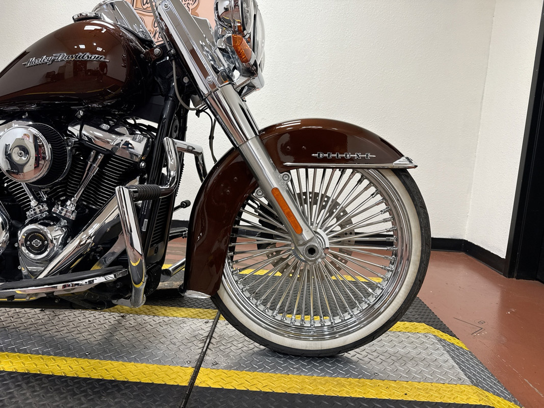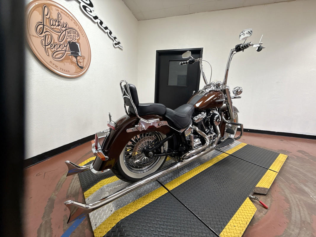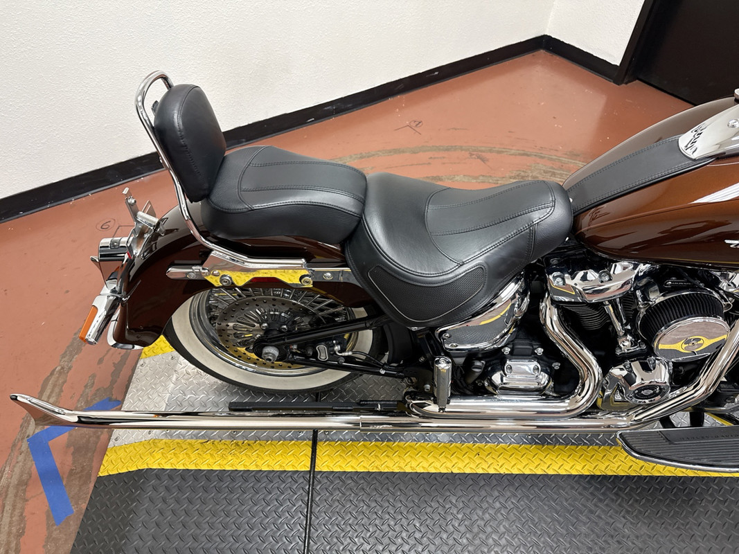 Rolling on classic wire-spoke wheels with whitewall tires and finished with extensive chrome throughout, this Softail Deluxe blends old-school looks with modern upgrades, making it an excellent choice for riders who appreciate classic Harley design paired with premium custom touches.