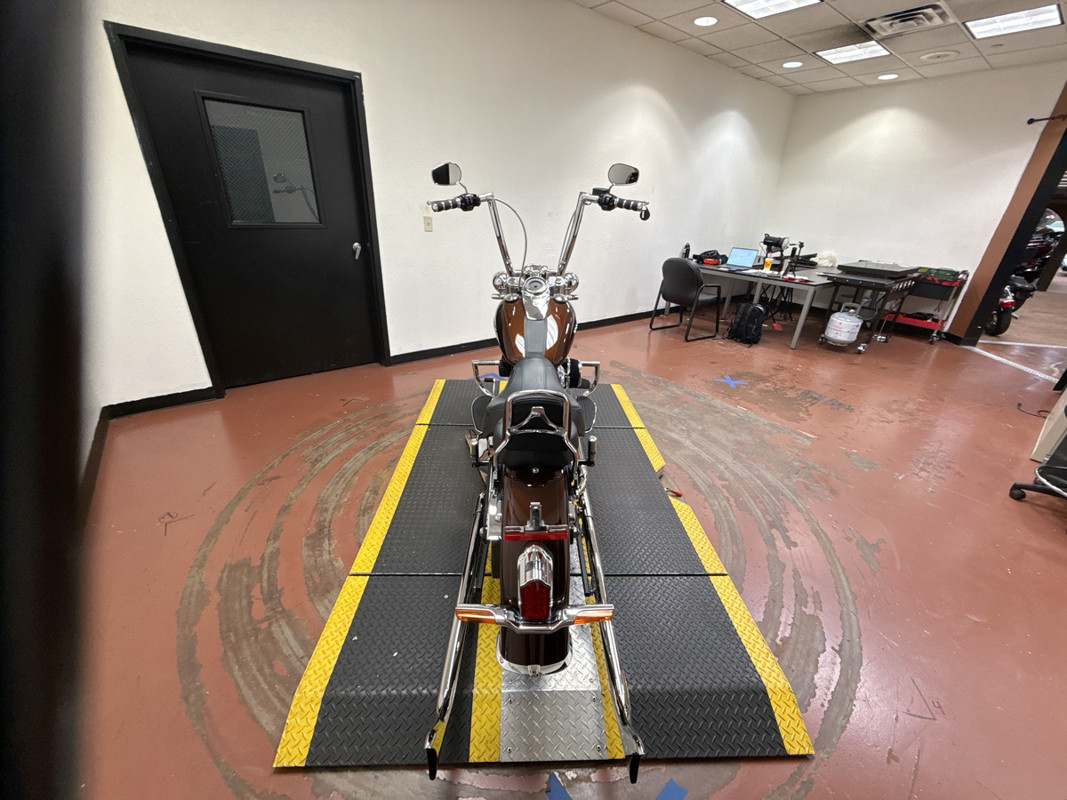 The bike is equipped with Bassani fishtail exhaust, providing a deep, classic exhaust note while perfectly complementing the Softail Deluxe’s vintage styling. For added comfort and confidence, it features a Lindby Custom Inc. safety bar, offering both protection and a convenient highway foot position.