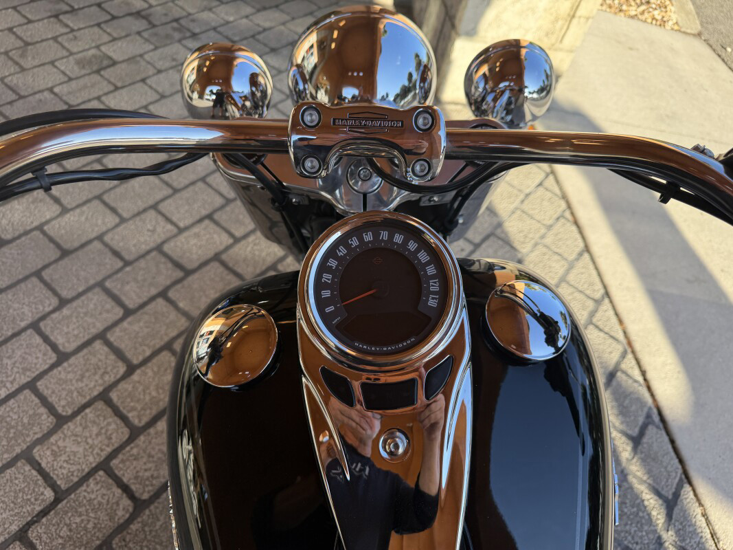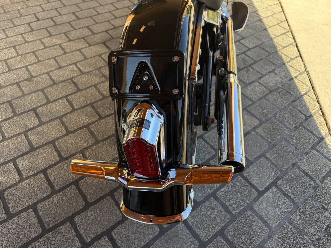 The look of the Softail Deluxe has always been deluxe. It’s the classic showstopper — born to stand out on a run down the Vegas strip. Now, underneath the bright chrome, you’ve got the ride of a seriously modern machine. Thirty-one pounds lighter, easier handling, massive power and acceleration, and all-day comfort. Everything a rider expects that technology can deliver. It’s a combination of vintage style and modern know-how unlike anything that ever hit the boulevard, set to the sound of the Milwaukee-Eight 107 V-Twin engine. Settle into the comfortable new seat and grab the pullback handlebars. Start the show.