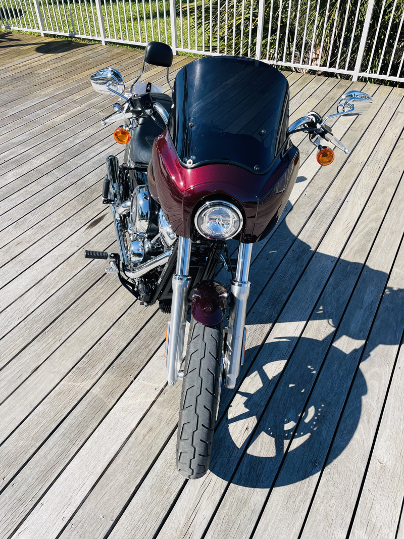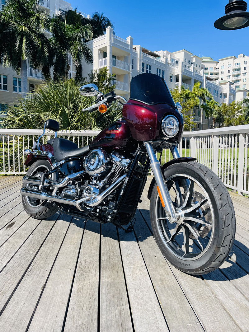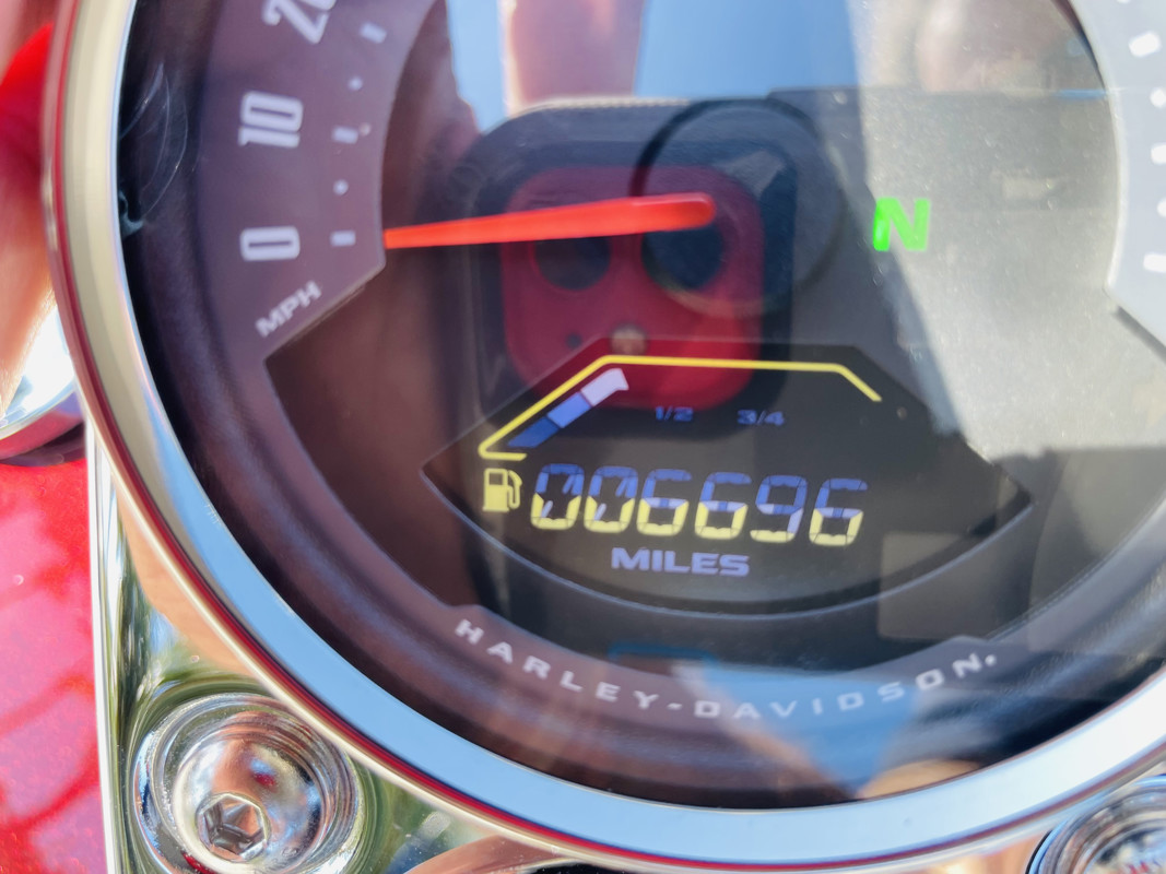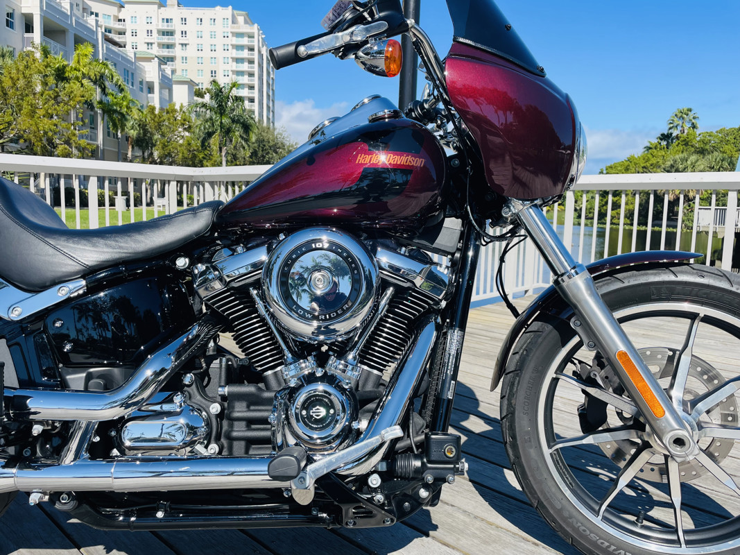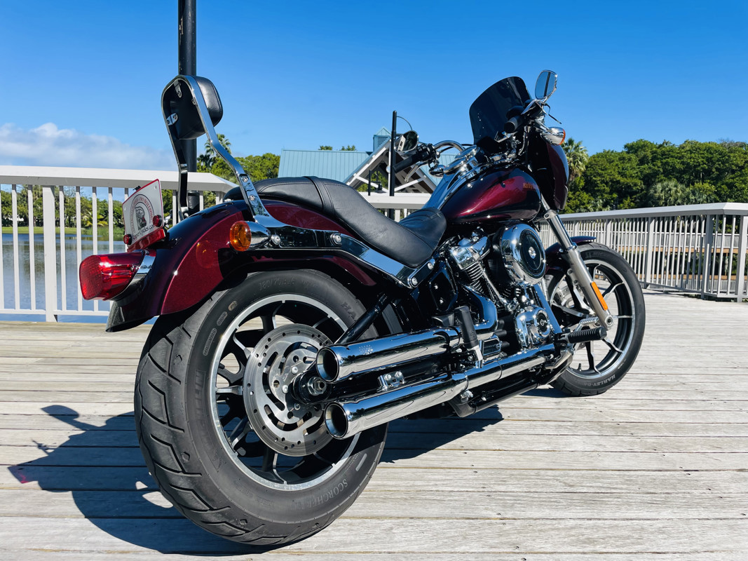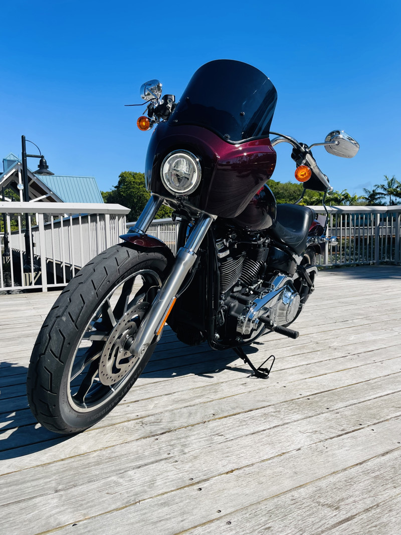 The new and improved Low Rider Softail with the new Milwaukee Eight motor is an amazing bike. Smooth ride with fast and responsive engine an of course 6-speed for those longer rides. This 2019 has been owned by an elderly rider who bought this bike new and rarely rode it. It had an unfortunate incident when it rubbed during transport on the left side of the tank and rubbed through the clear. See the walk around video for details. The bike was sold by us a year ago to another rider who added 2K miles and had installed the fairing, buffed the clear coat out and kept the bike in loving condition. The bike shows exceptional well. Twisted Cherry paint and all the chrome is nearly flawless (with the small exception on the left side tank). Why buy new?