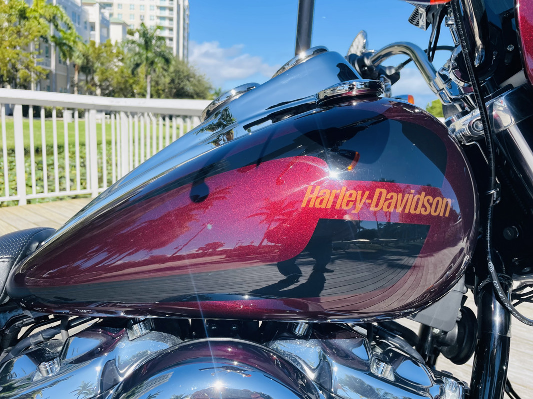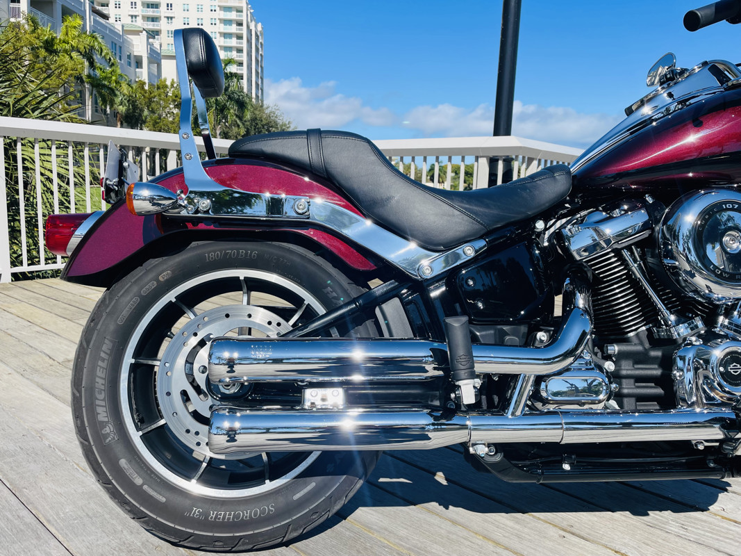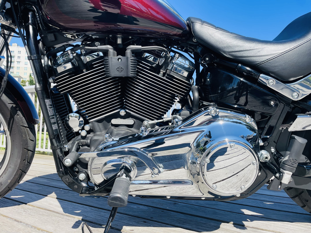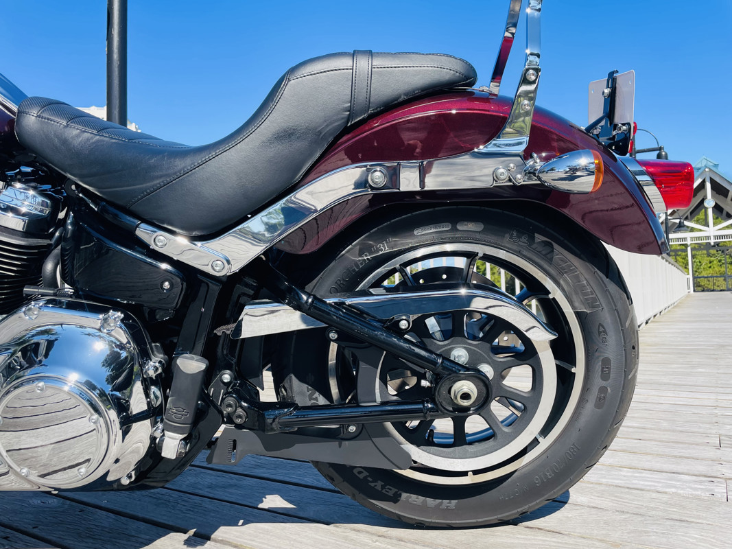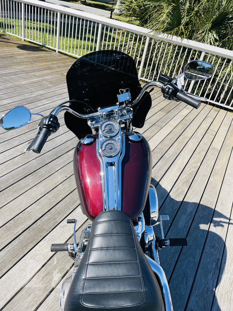 The new and improved Low Rider Softail with the new Milwaukee Eight motor is an amazing bike. Smooth ride with fast and responsive engine an of course 6-speed for those longer rides. This 2019 has been owned by an elderly rider who bought this bike new and rarely rode it. It had an unfortunate incident when it rubbed during transport on the left side of the tank and rubbed through the clear. See the walk around video for details. The bike was sold by us a year ago to another rider who added 2K miles and had installed the fairing, buffed the clear coat out and kept the bike in loving condition. The bike shows exceptional well. Twisted Cherry paint and all the chrome is nearly flawless (with the small exception on the left side tank). Why buy new?