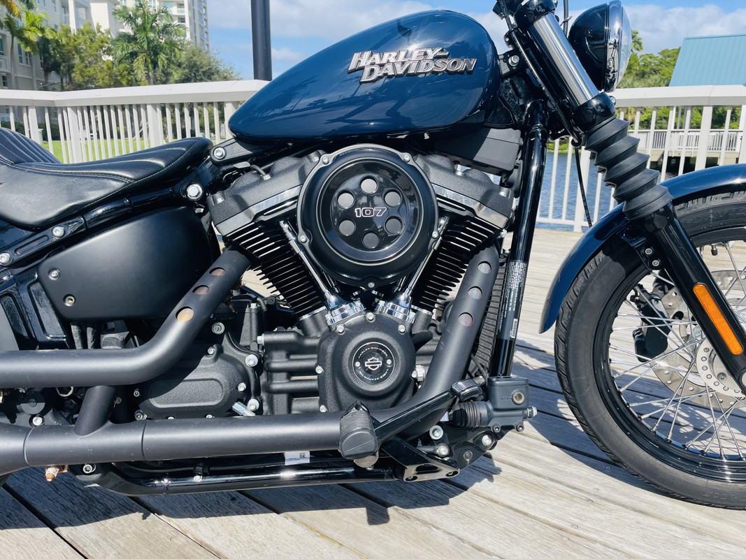 Street Bob was introduced in the 2006 as part of the Dyna lineup for one year with the 88ci motor but only fuel injected and 6-speed transmission (FXDBI) and from 2007 with the 96ci motor, which was only available as fuel injected hence the “I” was dropped. 2012 saw the change to the 103 motor and in 2018, with the Dyna line being retired, Street Bob was switched to the Softail line and is fitted with the 107ci Milwaukee 8 motor.