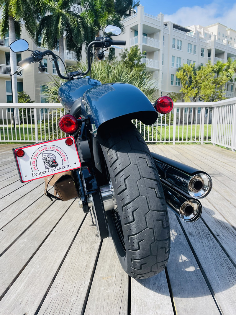 This amazing Street Bob is finished in Billiard Blue and comes out of Tennessee. Super low 4K miles with a mostly stick setup The bike overall is in great condition. Small scratches here and there but nothing out of the ordinary. Beautiful color and with the new Milwaukee Eight motor a true modern bike that needs nothing.