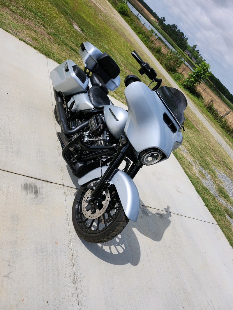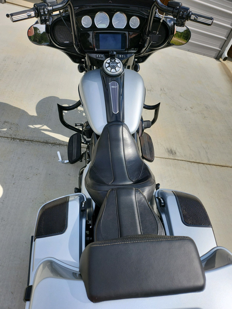 14 inch bars, Bad Dad custom engine crash guards, chopped tour pack, sissy bar, screaming eagle exhaust, decatted head pipe, Rockford Fosgate speakers and amps, Trask performance vented transmission/engine cover, all LED lights, Klockwerks 6.5 inch tinted windshield and an 8.5 inch tinted to go with it, CVO seat and backrest on tour pack, tackform phone holder, luggage rack to go with it, Vance and Hines programmable tuner, fresh 3 whole serviced, new K&N air filter, 2 key fobs, all owners Manuel's. New highways pegs never installed and all original equipment to go with it.