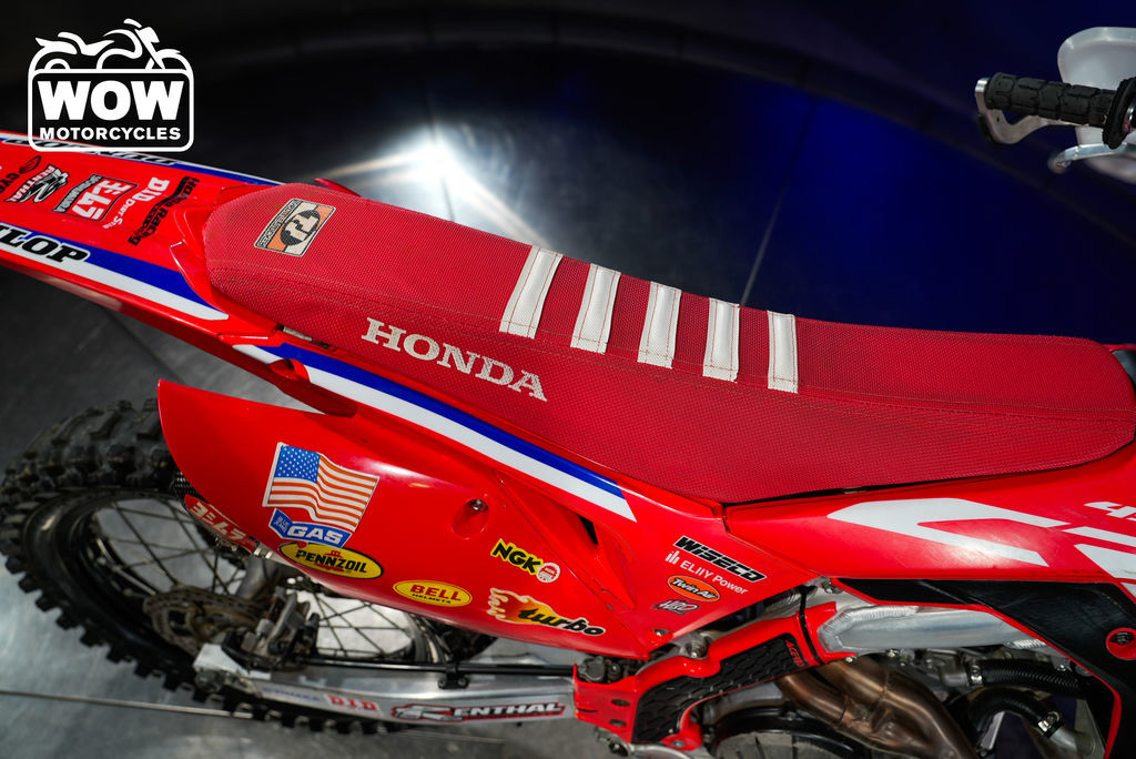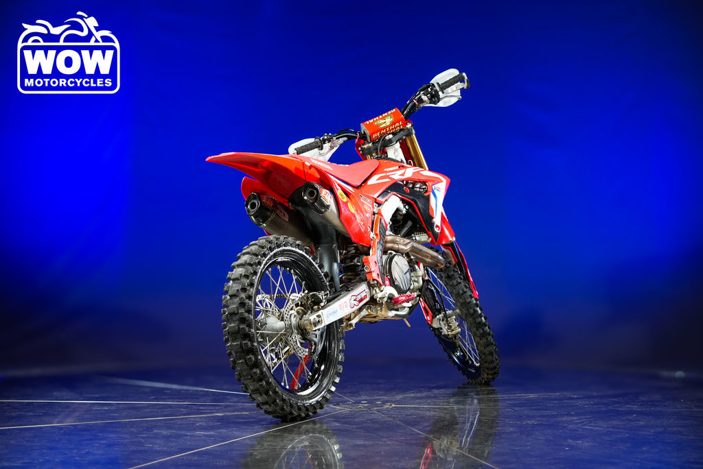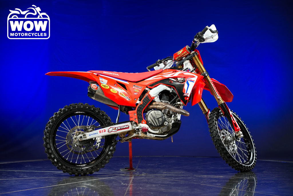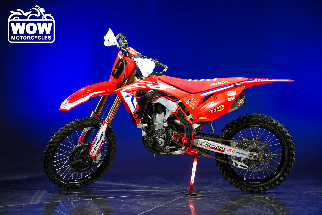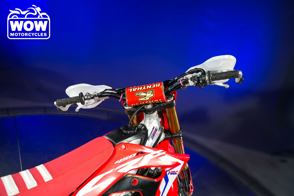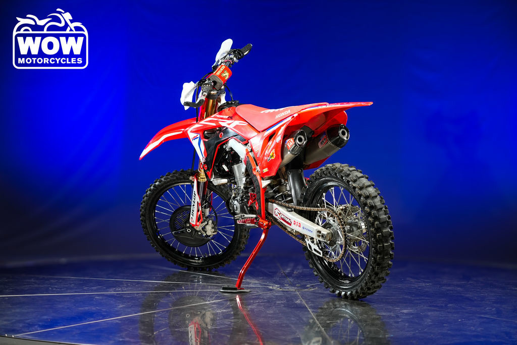 The 2019 Honda CRF450RWE (Works Edition) is a premium, factory-inspired motocross machine built on the updated CRF450R platform, featuring a potent 449.7cc liquid-cooled Unicam single-cylinder four-stroke engine with hand-ported cylinder head, aggressive ECU mapping, and a Yoshimura titanium slip-on exhaust for explosive power, improved mid-to-top-end pull, and lightning-quick revs. Upgrades include titanium nitride-coated suspension components, revalved Showa forks and shock for superior plushness and control, black DID LT-X rims, RK gold chain, black triple clamps, Throttle Jockey HRC graphics, and a grippy seat cover—delivering race-ready performance straight from the crate. A limited-edition holeshot king for serious competitors seeking that works-team edge.