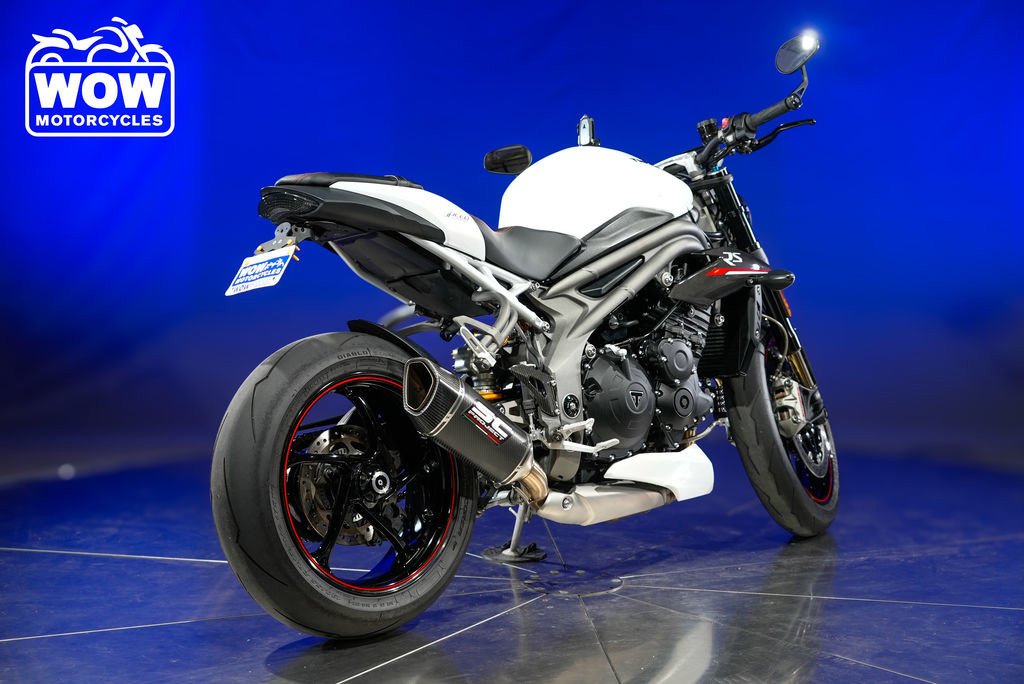 The 2019 Triumph Speed Triple is a legendary naked sportbike that blends raw performance, aggressive styling, and refined British engineering. Powered by Triumph’s iconic 1050cc inline three-cylinder engine, this streetfighter delivers explosive torque, razor-sharp throttle response, and an unmistakable triple-cylinder growl. With its muscular stance, signature twin headlights, and sculpted fuel tank, the Speed Triple commands attention from every angle. Whether carving backroads or dominating city streets, this bike offers a thrilling yet controlled ride. Performance 1050cc liquid-cooled inline triple engine Approx. 148 horsepower Smooth 6-speed transmission Ride-by-wire throttle with multiple riding modes Brembo high-performance braking system Advanced Technology Full-color TFT display Switchable traction control ABS Adjustable suspension (model dependent – S or R version) Lightweight aluminum frame and single-sided swingarm The 2019 Speed Triple strikes the perfect balance between everyday rideability and track-ready capability. Its upright ergonomics provide comfort for longer rides, while its precise chassis and premium components deliver confidence-inspiring handling. If you're looking for a naked sportbike with attitude, heritage, and serious performance credentials, the 2019 Triumph Speed Triple is ready to impress.