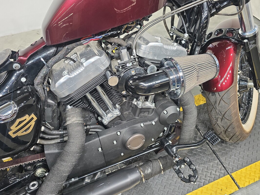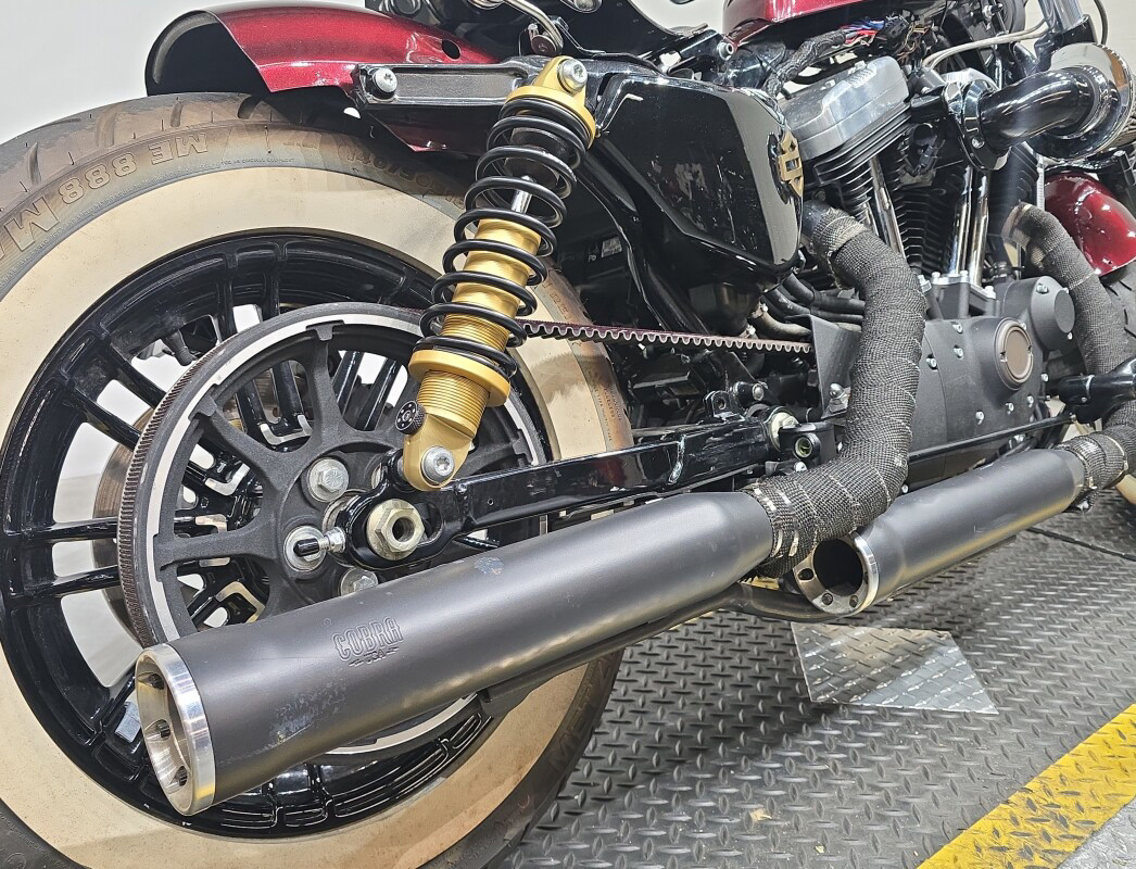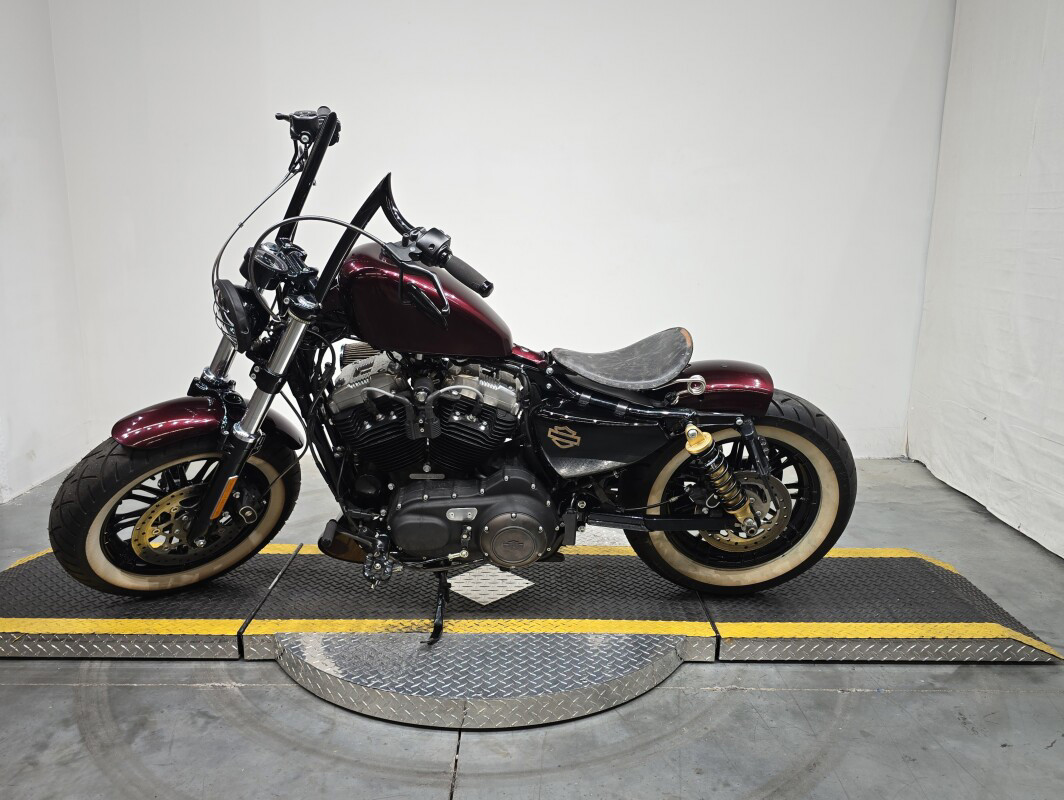 Yeah, you’ll make a statement. The first time the world saw this iconic 2.1-gallon gas tank was in 1948. But the world has never seen it sitting atop anything quite like this. The Forty-Eight motorcycle. Designed with its signature bulldog stance and the powerful 1200cc Evolution engine. Large 49mm front forks, an adjustable rear suspension, cast aluminum wheels with floating rotors and powerful brakes bring plenty of handling and comfort to this heavy-hitting style.