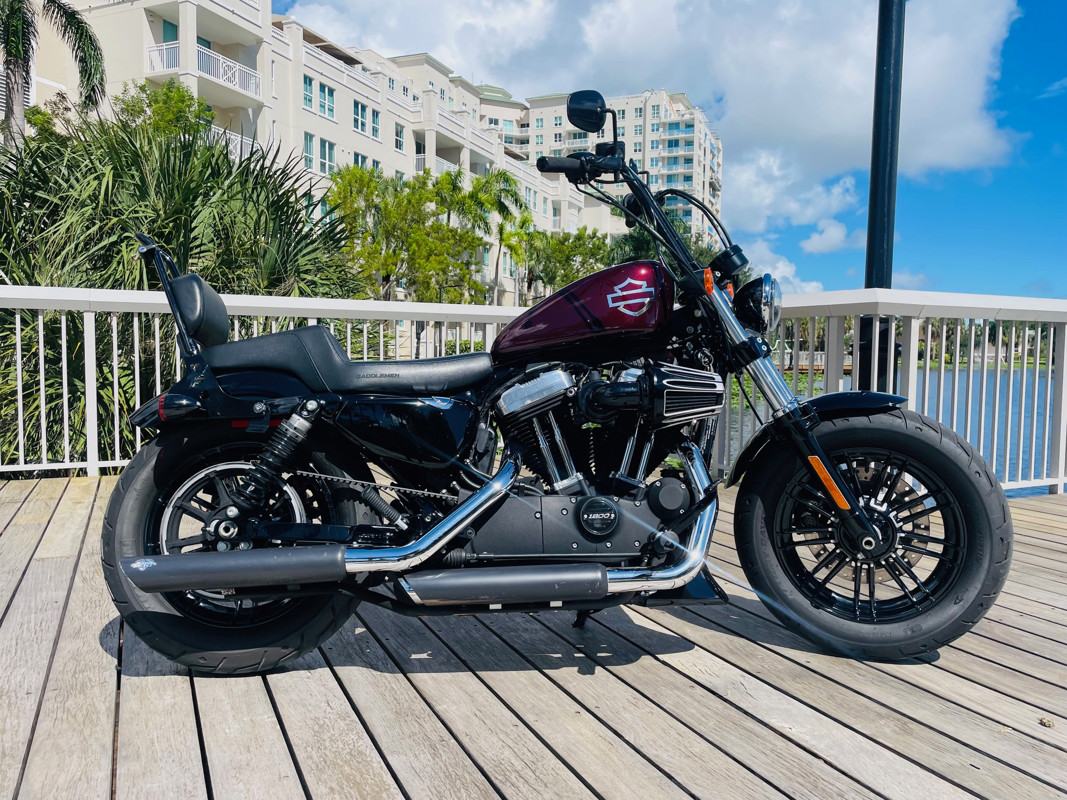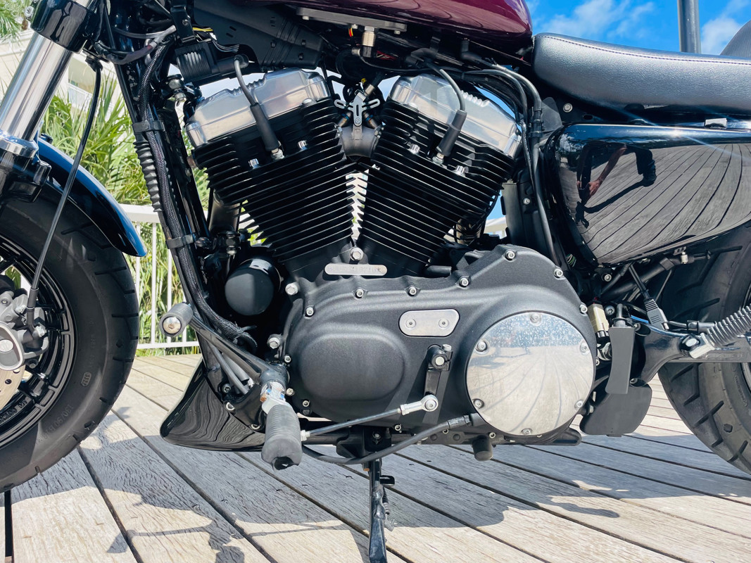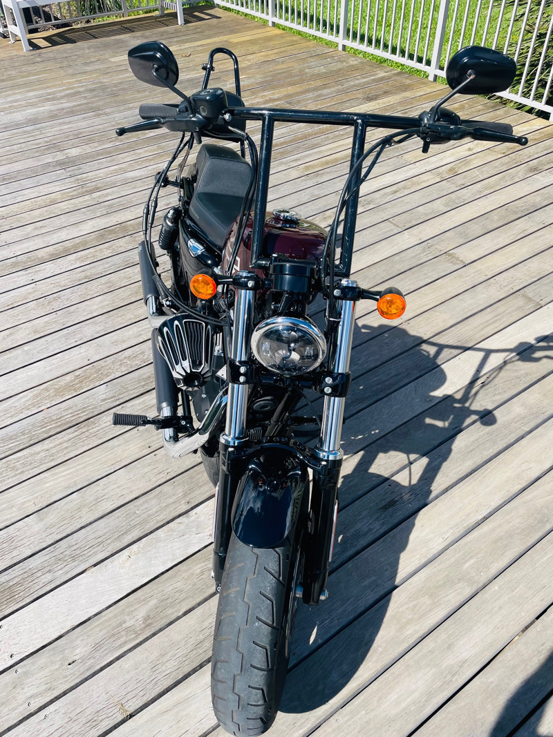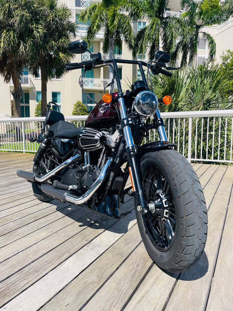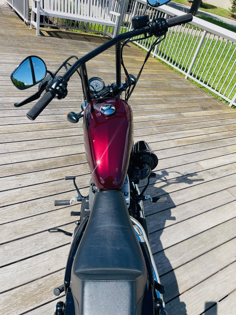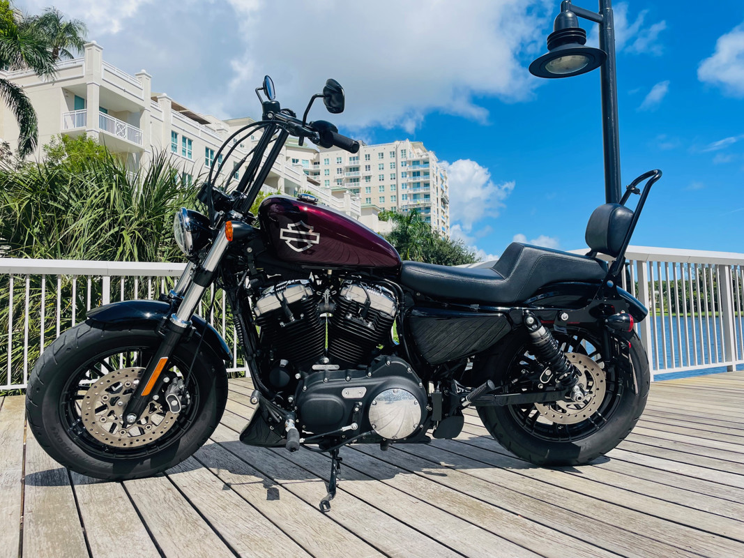 Very nice Forty Eight Sportster with the 1200cc motor, quick and just stunning looking. The bike had a few upgrades and the tank was custom painted in dark cherry candy color. The bike runs great and needs really nothing. Equipped with a Saddlemen seat ($400) and some custom bars, LED lights. Tires are good. This is an excellent bike for someone who really wants to go out and have fun. This is the least expensive 48 out there !