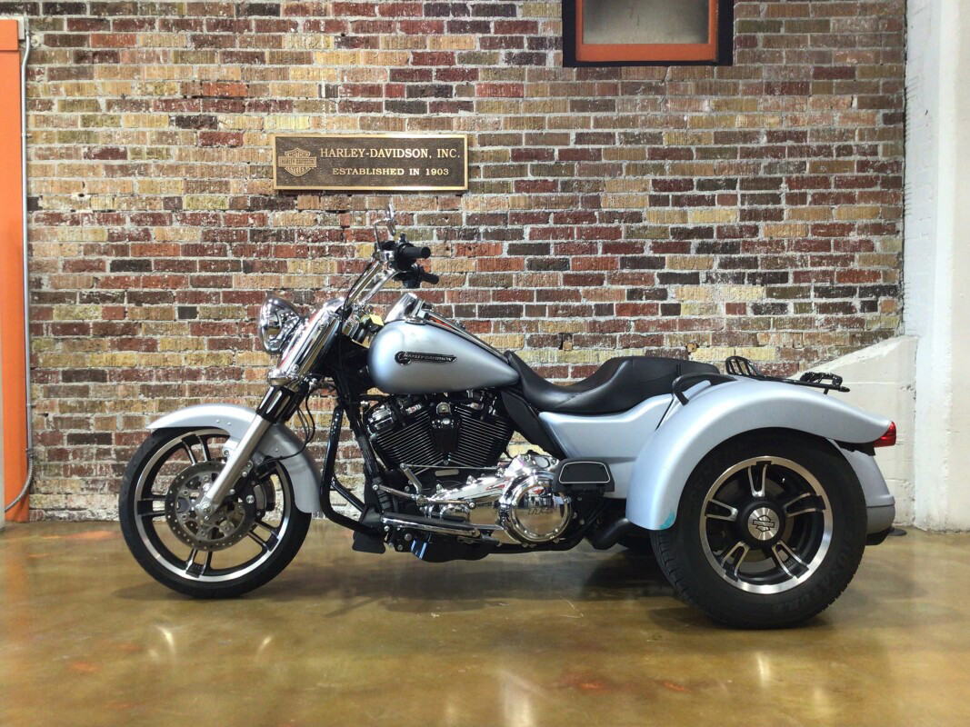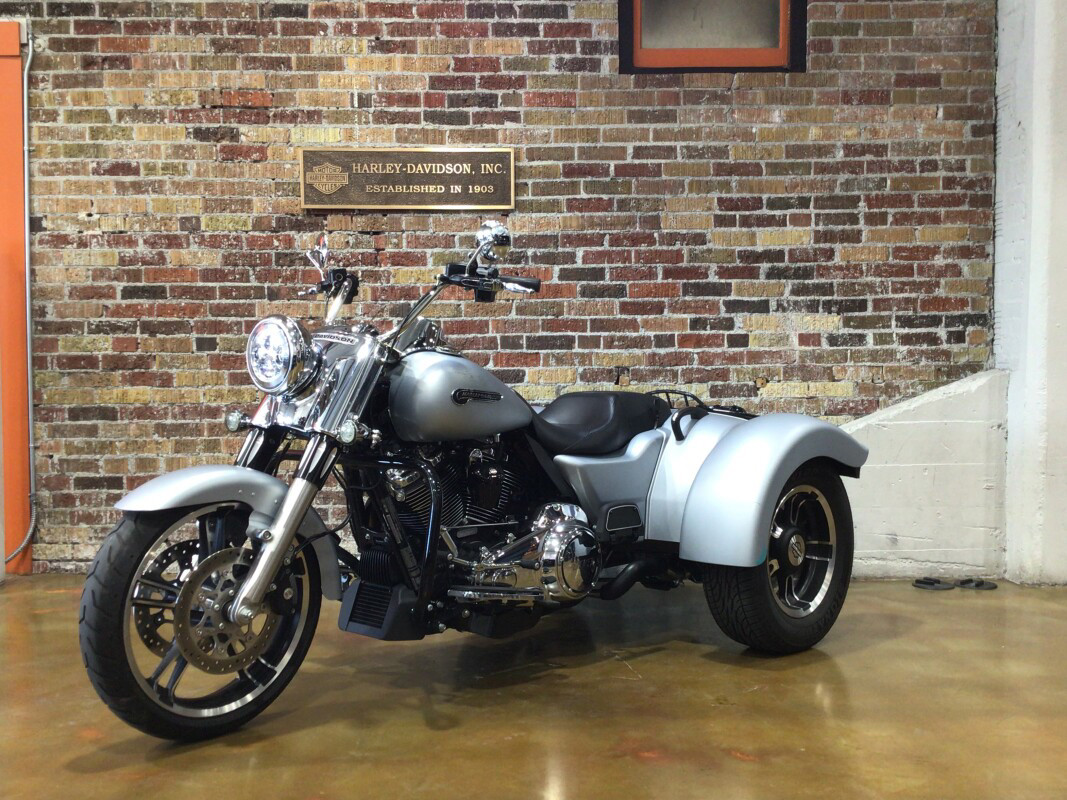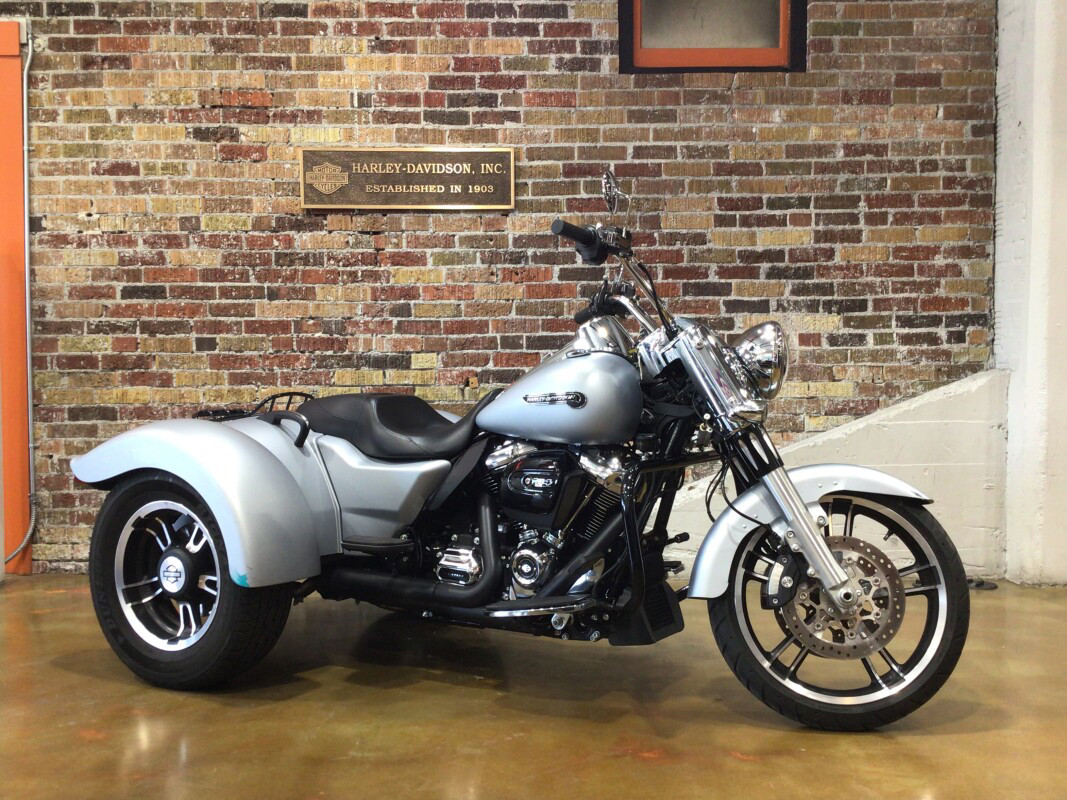 The bobbed fenders, Enforcer aluminum wheels and 12-inch mini-ape hanger handlebars give the Freewheeler three-wheeler a stripped-down, garage custom look. But its optional trike-specific Reflex Defensive Rider System with tire-pressure monitoring is something you can only get from the H-D factory. All powered by the Milwaukee-Eight 114 V-Twin engine, this trike transcends comfort on its 49-millimeter front forks and easily adjustable rear suspension.
