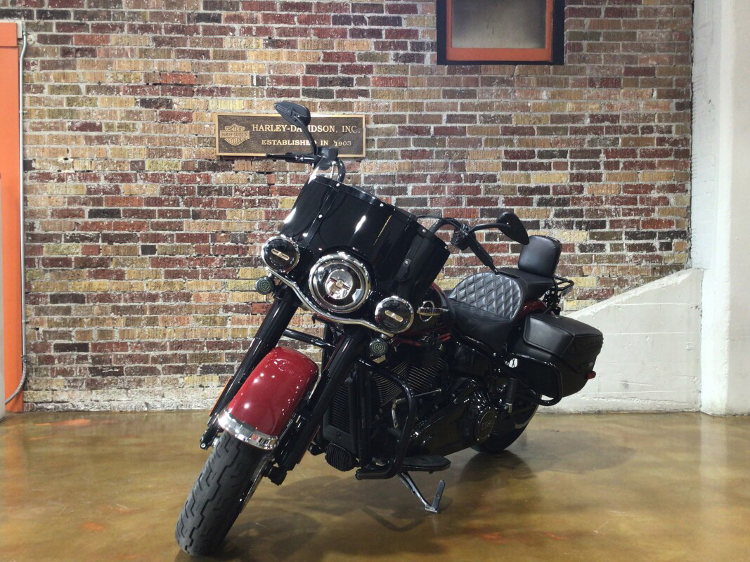 The refined gloss-black finishes, modern edge and reinvigorated ride of the Heritage model take nostalgia ripping into a new place. It starts with the performance of the Milwaukee-Eight 107 or 114 engine and the re-invented Softail frame and suspension. The ride will put a big smile on your face. On top of that, you get a look that drips with gangster-era style. And practical features like a windshield and hard saddlebags for light touring. Tradition is good, but it doesn’t mean sitting still. Available in 107 (1745cc) and 114 (1868cc) engine displacements.