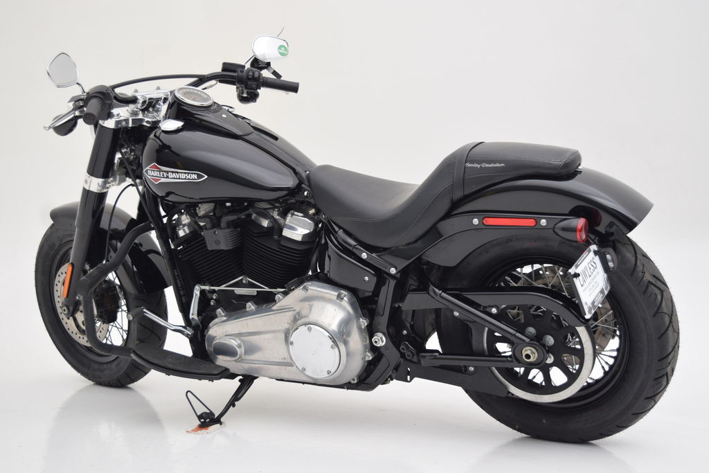 This 2020 Harley-Davidson® FLSL Softail® Slim® is a timeless cruiser finished in classic black with just 8,484 miles. Powered by the Milwaukee-Eight® 107 engine, this Softail Slim delivers smooth, responsive performance with that unmistakable Harley-Davidson rumble. This bike is equipped with an upgraded Rinehart exhaust system, providing a deep, aggressive tone while enhancing overall performance. An upgraded seat adds both comfort and style, making it ideal for longer rides or daily cruising. With its minimalist bobber-inspired design, laced wheels, and low-slung stance, the Softail Slim blends old-school looks with modern engineering. Clean, well-kept, and tastefully upgraded, this FLSL is ready to hit the road and turn heads wherever it goes.