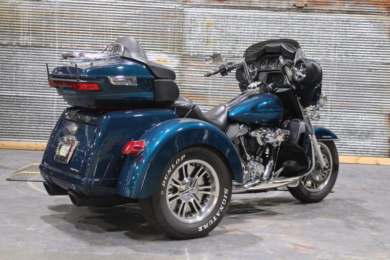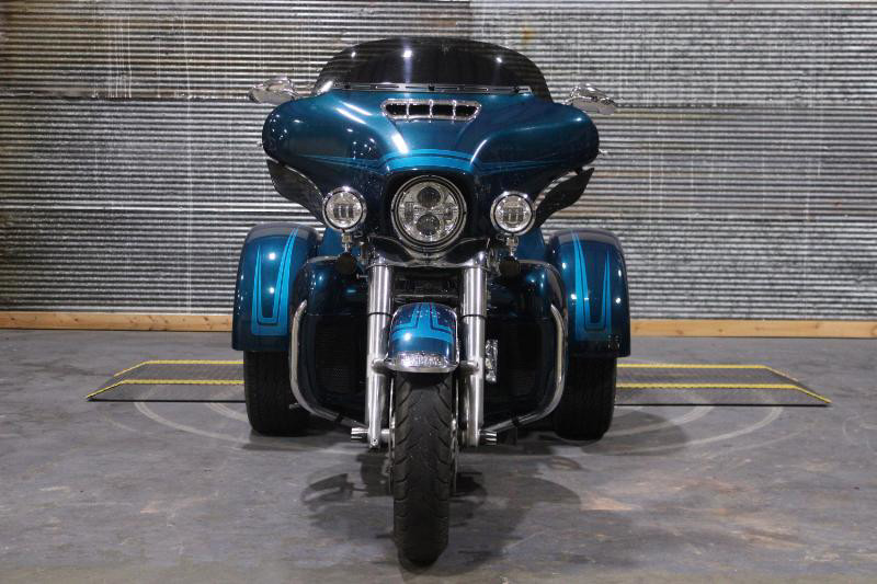 The 2020 HD Tri Glide Ultra is a striking and robust motorcycle that combines the classic appeal of Harley-Davidson with the stability and comfort of a trike. This used model, finished in a captivating Tahitian Teal, offers a unique blend of style, performance, and practicality, making it an excellent choice for riders who appreciate both tradition and innovation.