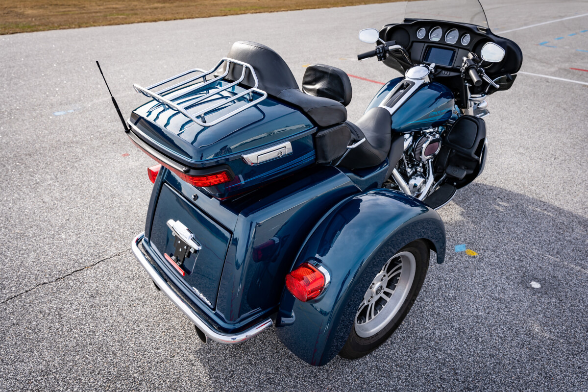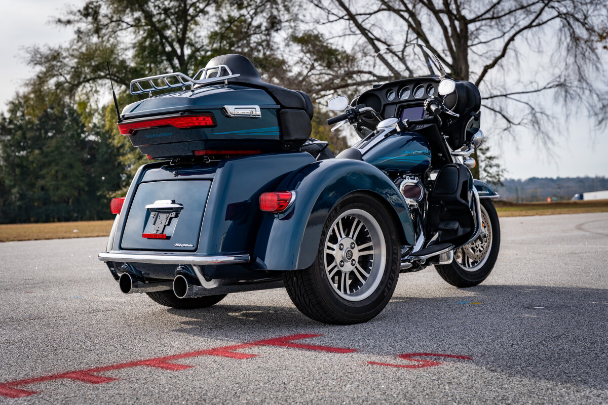 The Tri Glide Ultra will make sure you stay grounded in mind and body with its additional wheel for confidence and comfort. The optional trike-specific Reflex Defensive Rider Systems with tire-pressure monitoring and H-D Connect give you direct contact with everything between you and the road—whether you're on your trike or off. A Milwaukee-Eight 114 engine brings this machine to life, while 6.8 cubic feet of storage space makes it so you can escape the real world without leaving the comforts of home behind.
