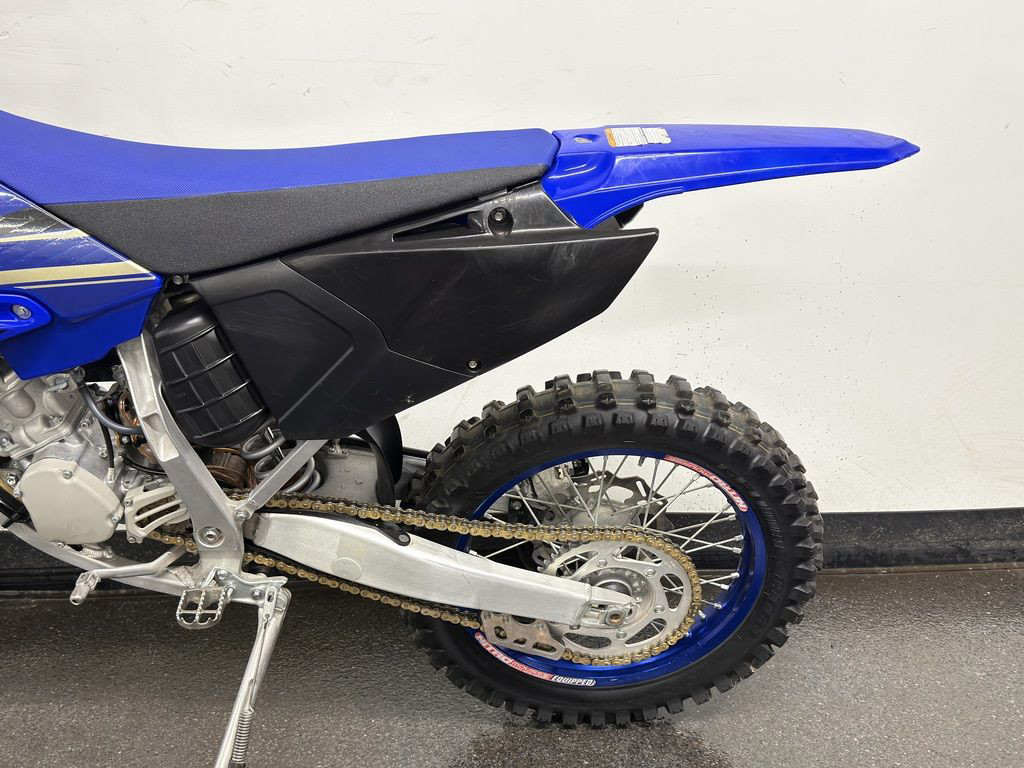 The YZ125X comes equipped with off-road focused tires with an 18” rear wheel, larger rear sprocket, a side stand, sealed O-ring chain and a reserve fuel petcock.