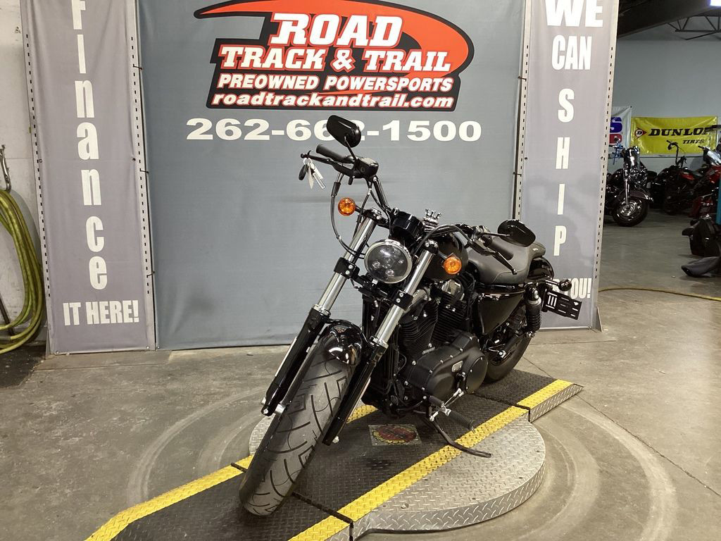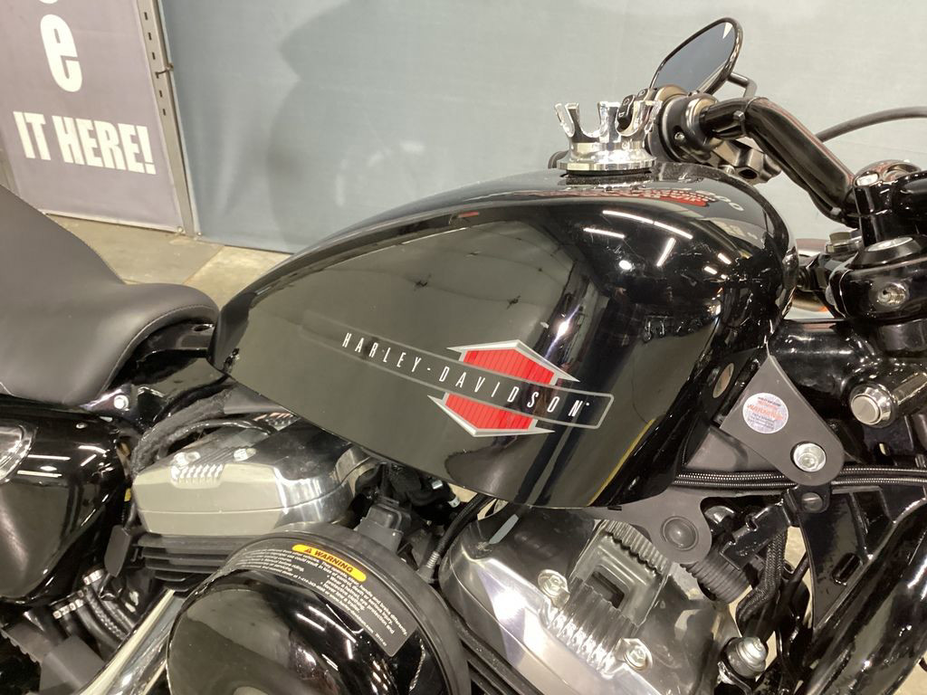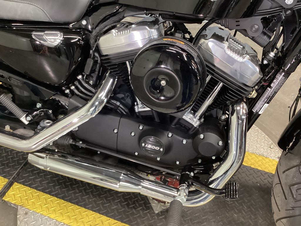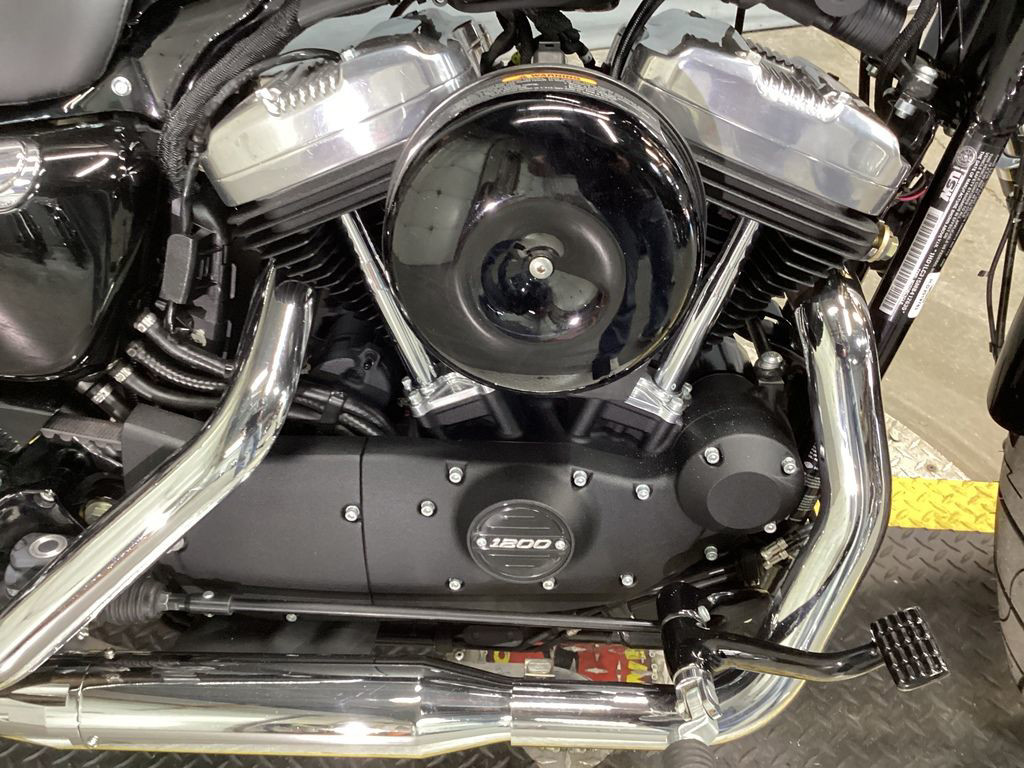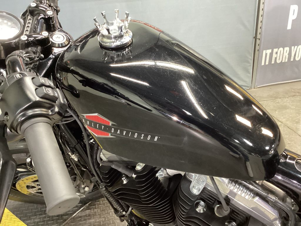 A classic peanut fuel tank design that adds to the machine's low, powerful bulldog look, showing off the solid mass of the engine and the rawboned style of the lean Sportster® frame.