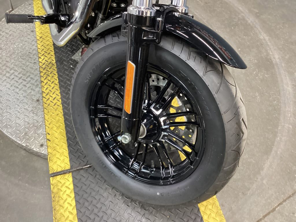 Custom rubber reminiscent of the lead-sled culture. You get a beefy front end with a tall, fat MT90 tire that gives the bike a dominating presence up front and provides a smooth ride and solid handling.