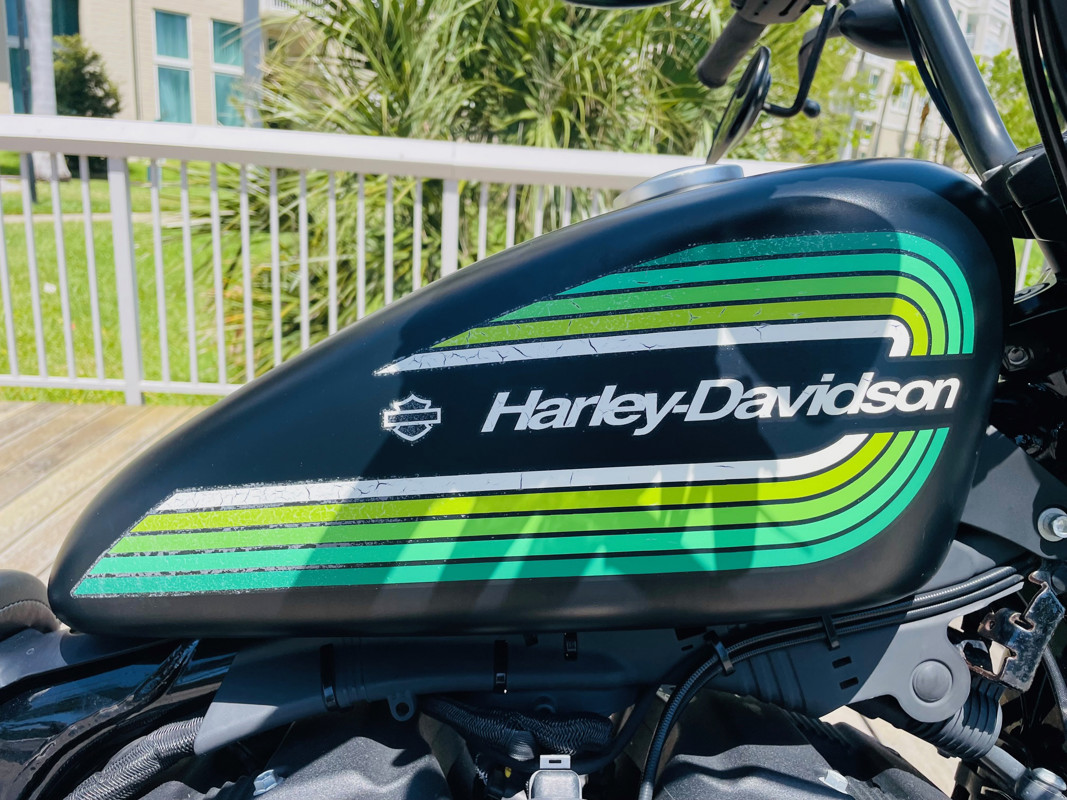 A 1200 Iron Sportster in the famous AMF retro color combination is both a classic Sportster look but packs the punch of the modern 1200cc Sportster motor.