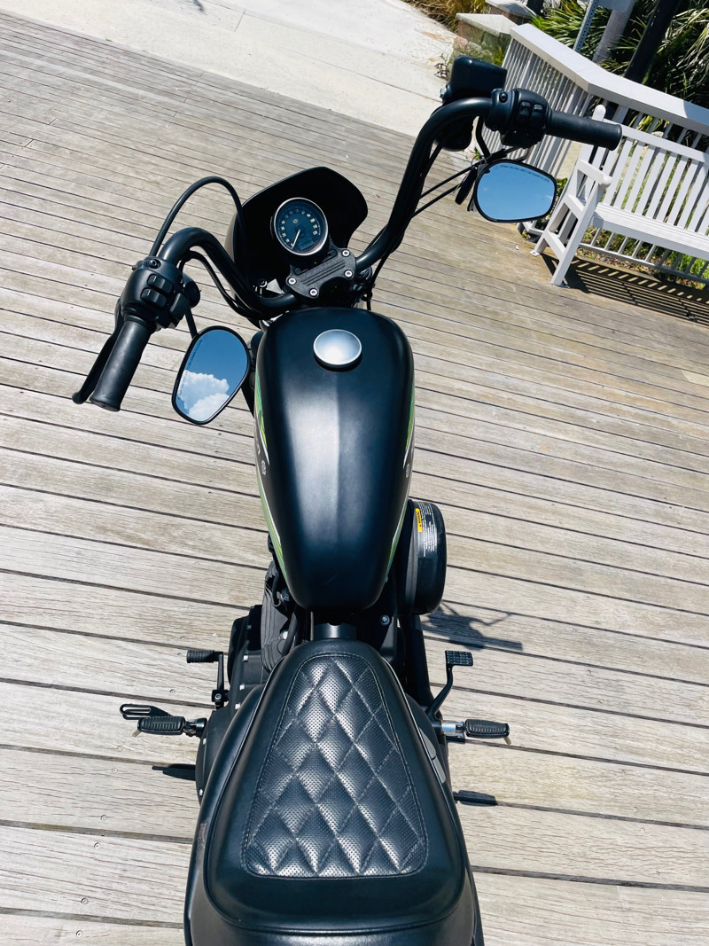 The bike is not a perfect bike but has no dents or dings in the tins. The AMF retro tank decal has some sun spotting on it. See the walk around for details and the photo gallery. There are minor blemishes but overall a good looking bike at an amazing price. The 1200 motor packs some punch. The actual mileage on the bike is 8,884 but the title was marked in error in 2024 with 12,856.
