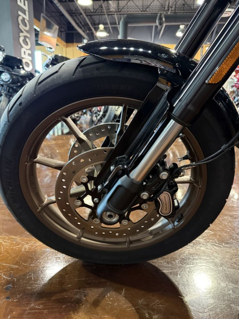 The Low Rider® S model frame rake is reduced to 28 degrees from the 30 degree rake of the standard Low Rider® model, resulting in more responsive handling.