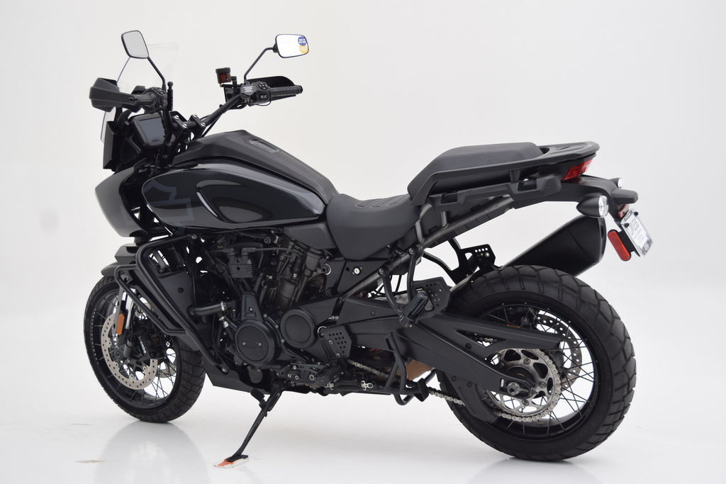 This 2021 Harley-Davidson® RA1250S Pan America™ 1250 Special is finished in sleek black paint and has 13,345 miles. Powered by the revolutionary Revolution® Max 1250 engine, this adventure-touring motorcycle delivers strong performance with smooth power delivery, whether on the highway or off the beaten path. The Pan America™ 1250 Special comes well-equipped with premium features including adaptive ride height, semi-active suspension, multiple ride modes, cornering-enhanced ABS and traction control, cruise control, and a full TFT touchscreen display with Bluetooth connectivity. Its upright riding position, long-travel suspension, and advanced rider aids make it comfortable and confidence-inspiring for long-distance travel and daily riding alike. A versatile and capable Harley-Davidson®, this Pan America™ 1250 Special is ready for adventure, touring, and everything in between.