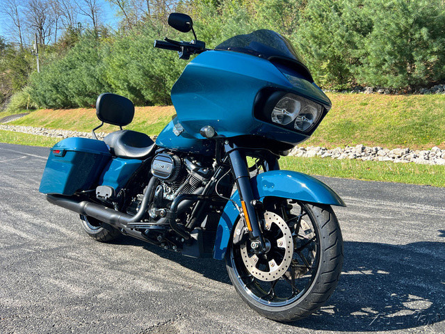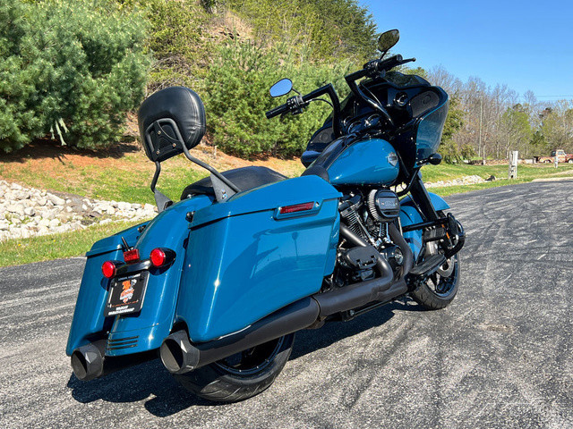 2021 Harley-Davidson® Road Glide® SpecialA blacked-out or bright chrome performance bagger, loaded with premium features.Features may include:THIS IS THE RIGHT BIKE FORRiders seeking classic touring design with premium H-D featuresMilwaukee-Eight® 114 V-Twin engine and sharknose fairingNever before offered two-tone paint schemesMilwaukee-Eight® 114 EngineThe most displacement in standard H-D® Touring models. You get 114 cubic inches of passing and horizon-chasing power.Reflex™ Linked Brembo® Brakes with Standard ABSDesigned to help prevent the wheels from locking under braking to assist the rider in maintaining control when braking in a straight-line. ABS operates independently on front and rear brakes to keep the wheels rolling and help prevent uncontrolled wheel lock in urgent situations.BOOM!™ Box GTS Infotainment SystemAn evolved interface experience that offers a contemporary look, feel and function, with exceptional durability and features designed specifically for motorcycling. Every element is optimized to enhance the rider’s interaction with the bike and connectivity with the world.Blacked-Out Finishes Blacked-out from the front forks to the tips of the exhaust for an aggressive, modern look.Blacked-Out Prodigy WheelsBlack, glossy 19-inch front and 18-inch rear aluminum wheels so you can roll in with style and attitude.Stretched SaddlebagsA sleek look on the outside and roomy on the inside with more than enough space to stash your riding essentials. The lids open with a single touch of one hand. Responsive SuspensionHigh-performing front and rear suspension with easily adjustable rear shocks put you in control of a plush ride.