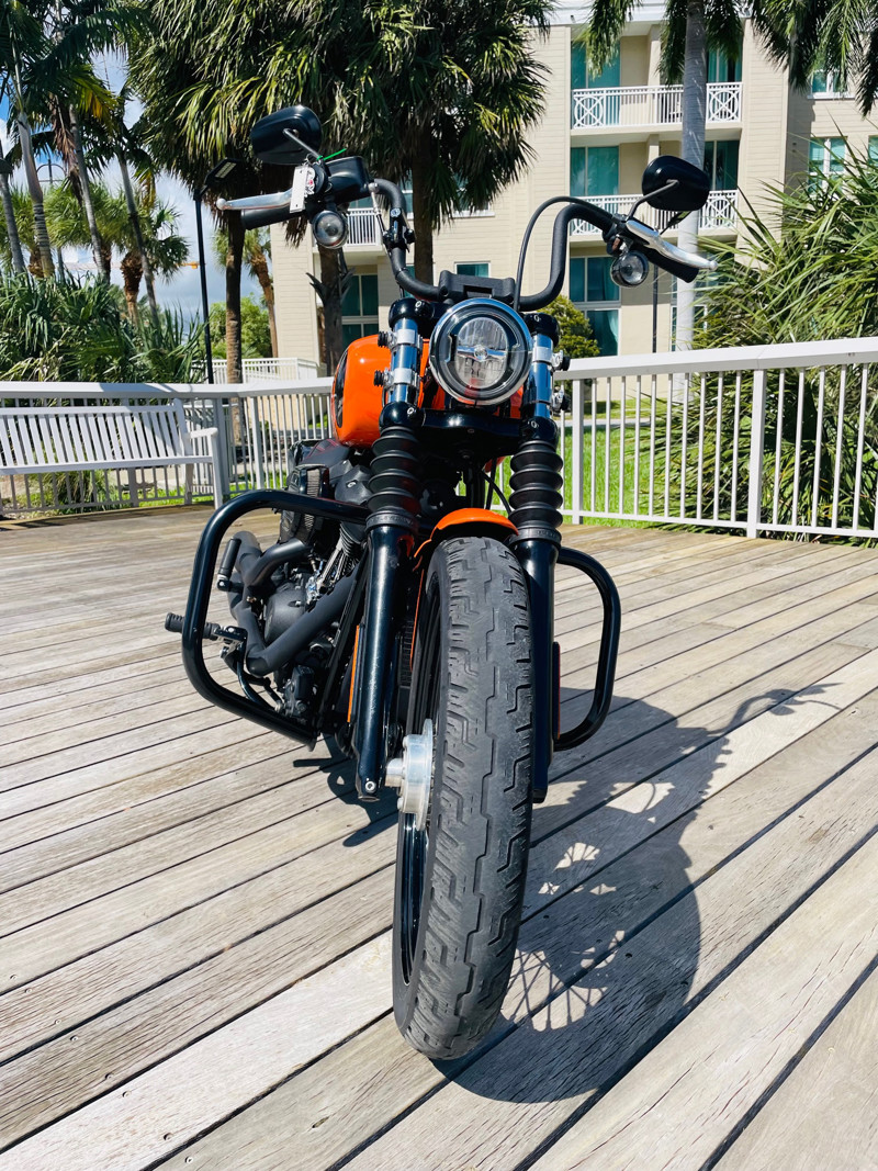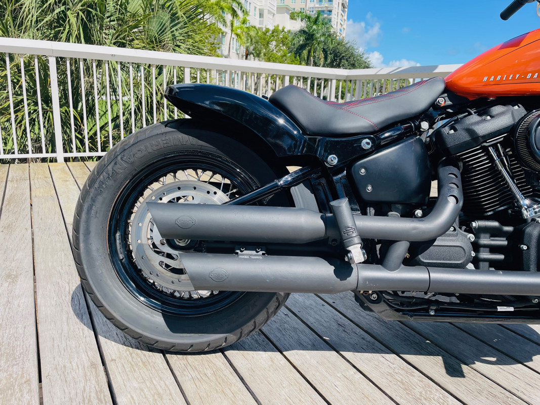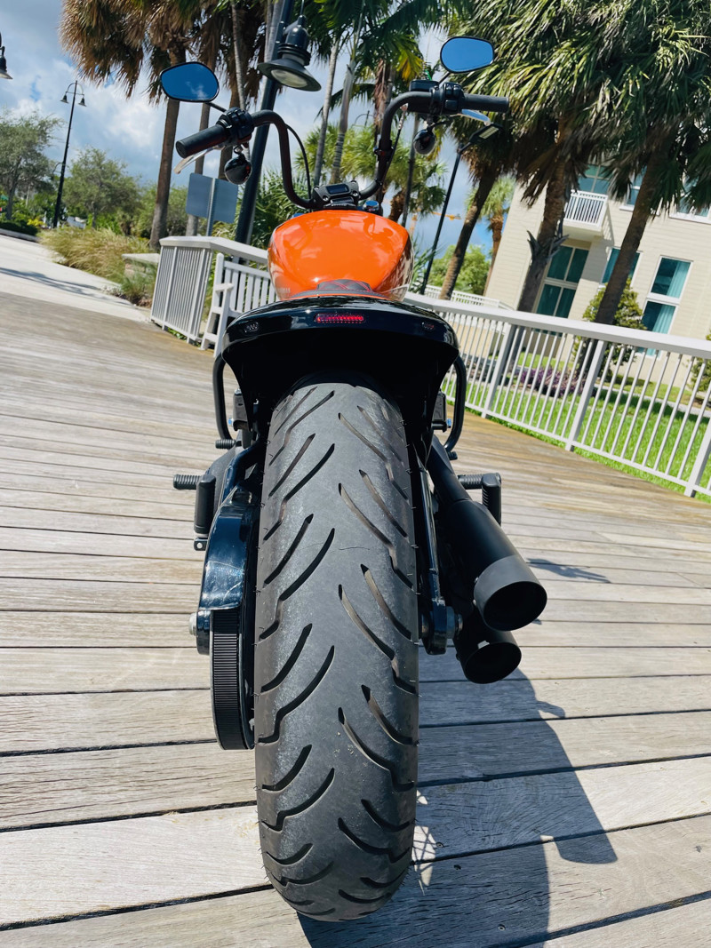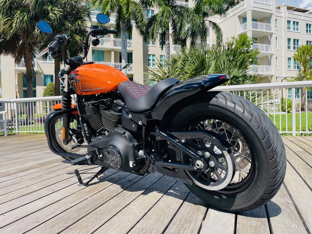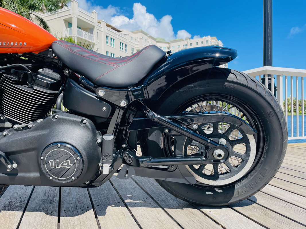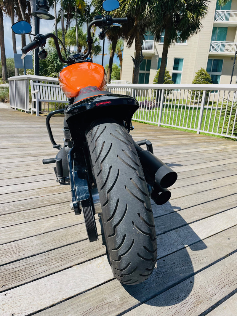 An amazing bike with the biggest power/weight ratio, making this the fasted of the 114ci powered bikes in the Harley lineup. This bike had a full custom rear fender and seat installed with integrated taillights turning this amazing machine into a unique bobber. The “Baja Orange” color option makes this bike stand out and gives it a unique look in the first place, add the Bobber conversion and you are riding an almost one-off combo that cannot be mistaken in the parking lot.