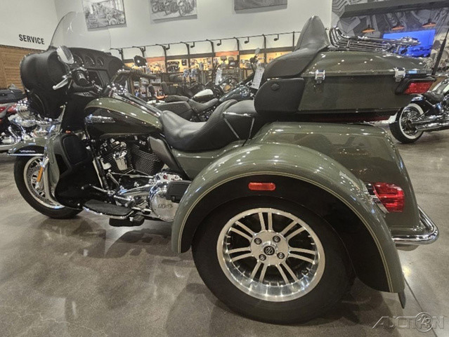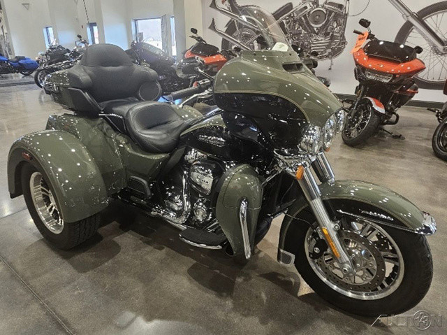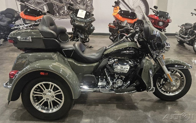 2021 Harley-Davidson® Tri Glide® UltraThe paragon of comfort. Locked-and-loaded with premium tour features and chrome accessories.Features may include:THIS IS THE RIGHT BIKE FORRiders seeking a one-of-a-kind 3-wheel touring experienceBold styling with premium paint and Tomahawk™ wheelsTwin-Cooled™ Milwaukee-Eight® 117 engine and Kahuna™ controlsTWIN-COOLED™ MILWAUKEE-EIGHT® 114 ENGINEThe most displacement in standard H-D® Touring models. You get 114 cubic inches of passing and horizon-chasing power.REFLEX™ LINKED BREMBO® BRAKES WITH STANDARD ABSDesigned to help prevent the wheels from locking under braking to assist the rider in maintaining control when braking in a straight-line. ABS operates independently on front and rear brakes to keep the wheels rolling and help prevent uncontrolled wheel lock in urgent situations.BOOM!™ BOX GTS INFOTAINMENT SYSTEMAn evolved interface experience that offers a contemporary look, feel and function, with exceptional durability and features designed specifically for motorcycling. Every element is optimized to enhance the rider’s interaction with the bike and connectivity with the world.HIGH PERFORMANCE SUSPENSIONPremium Harley-Davidson® touring suspension technology is calibrated specifically for Trike models, delivering a smooth and responsive ride.6-SPEED CRUISE DRIVE® TRANSMISSIONProvides smooth, quiet shifting and reduces engine speed on the highway, so you get a better match between engine RPM and road speed.TRUNK AND KING TOUR-PAK® STORAGEThe integrated trunk offers 4.4 cubic feet and 50 pounds of storage capacity, while the injection-molded Tour-Pak® luggage carrier adds an addtional 2.4 cubic feet storage capacity, combined giving you 6.8 cubic feet of storage.DAYMAKER® LED HEADLAMP AND LED FOGLAMPSDarkness–defying headlight so you can see and be seen.BATWING FAIRING & SPLITSTEAM AIR VENTDesigned to deliver smoother airflow and reduced head buffeting with a pressure-equalizing duct on the front.