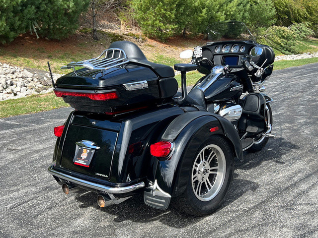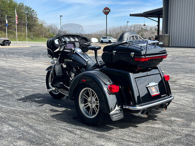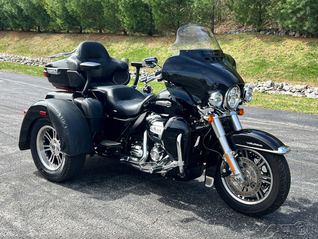 2021 Harley-Davidson® Tri Glide® UltraThe paragon of comfort. Locked-and-loaded with premium tour features and chrome accessories.Features may include:THIS IS THE RIGHT BIKE FORRiders seeking a one-of-a-kind 3-wheel touring experienceBold styling with premium paint and Tomahawk™ wheelsTwin-Cooled™ Milwaukee-Eight® 117 engine and Kahuna™ controlsTWIN-COOLED™ MILWAUKEE-EIGHT® 114 ENGINEThe most displacement in standard H-D® Touring models. You get 114 cubic inches of passing and horizon-chasing power.REFLEX™ LINKED BREMBO® BRAKES WITH STANDARD ABSDesigned to help prevent the wheels from locking under braking to assist the rider in maintaining control when braking in a straight-line. ABS operates independently on front and rear brakes to keep the wheels rolling and help prevent uncontrolled wheel lock in urgent situations.BOOM!™ BOX GTS INFOTAINMENT SYSTEMAn evolved interface experience that offers a contemporary look, feel and function, with exceptional durability and features designed specifically for motorcycling. Every element is optimized to enhance the rider’s interaction with the bike and connectivity with the world.HIGH PERFORMANCE SUSPENSIONPremium Harley-Davidson® touring suspension technology is calibrated specifically for Trike models, delivering a smooth and responsive ride.6-SPEED CRUISE DRIVE® TRANSMISSIONProvides smooth, quiet shifting and reduces engine speed on the highway, so you get a better match between engine RPM and road speed.TRUNK AND KING TOUR-PAK® STORAGEThe integrated trunk offers 4.4 cubic feet and 50 pounds of storage capacity, while the injection-molded Tour-Pak® luggage carrier adds an addtional 2.4 cubic feet storage capacity, combined giving you 6.8 cubic feet of storage.DAYMAKER® LED HEADLAMP AND LED FOGLAMPSDarkness–defying headlight so you can see and be seen.BATWING FAIRING & SPLITSTEAM AIR VENTDesigned to deliver smoother airflow and reduced head buffeting with a pressure-equalizing duct on the front.