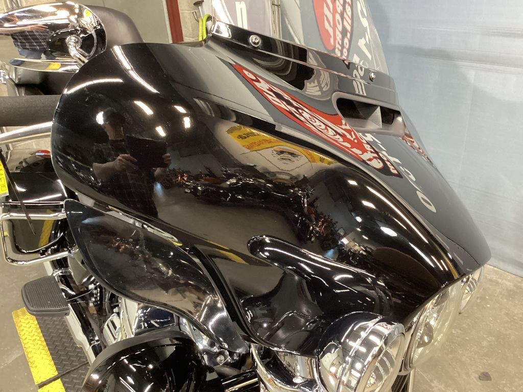 ONLY 57,598 MILES, 1-OWNER, 114" MOTOR, NAVIGATION, RACK, HD DAYMAKER LED HEADLIGHT AND SPOT LIGHTS, AUDIO, ABS, SECURITY, CRUISE CONTROL, HEATED GRIPS, BLUETOOTH, PAINTED INNER FAIRING, FACTORY CHROME WHEELS, WIND DEFLECTORS, HEAT DEFLECTORS, 6 SPEED TRANS, AND MORE! STOCK AND CLEAN FACTORY LOADED BLACK BAGGER!