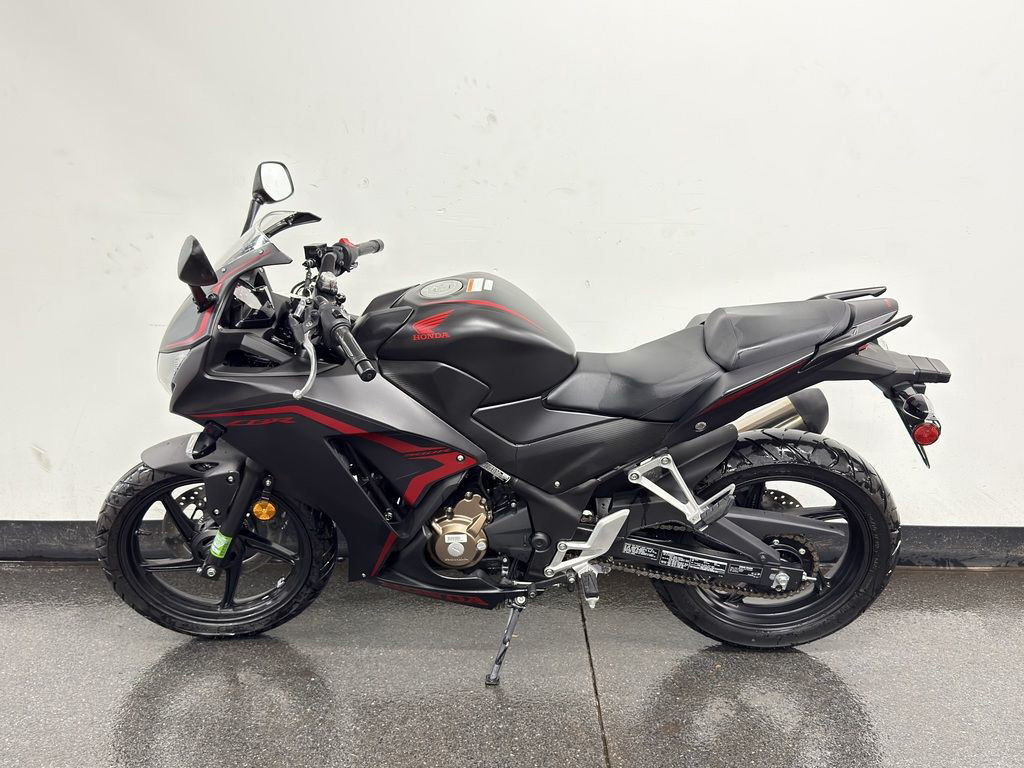 The CBR300R features full-cowl supersport styling and dual headlights, increasing aero efficiency and carrying the styling cues from our CBR-RR series.