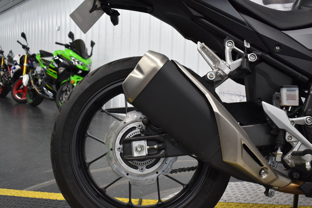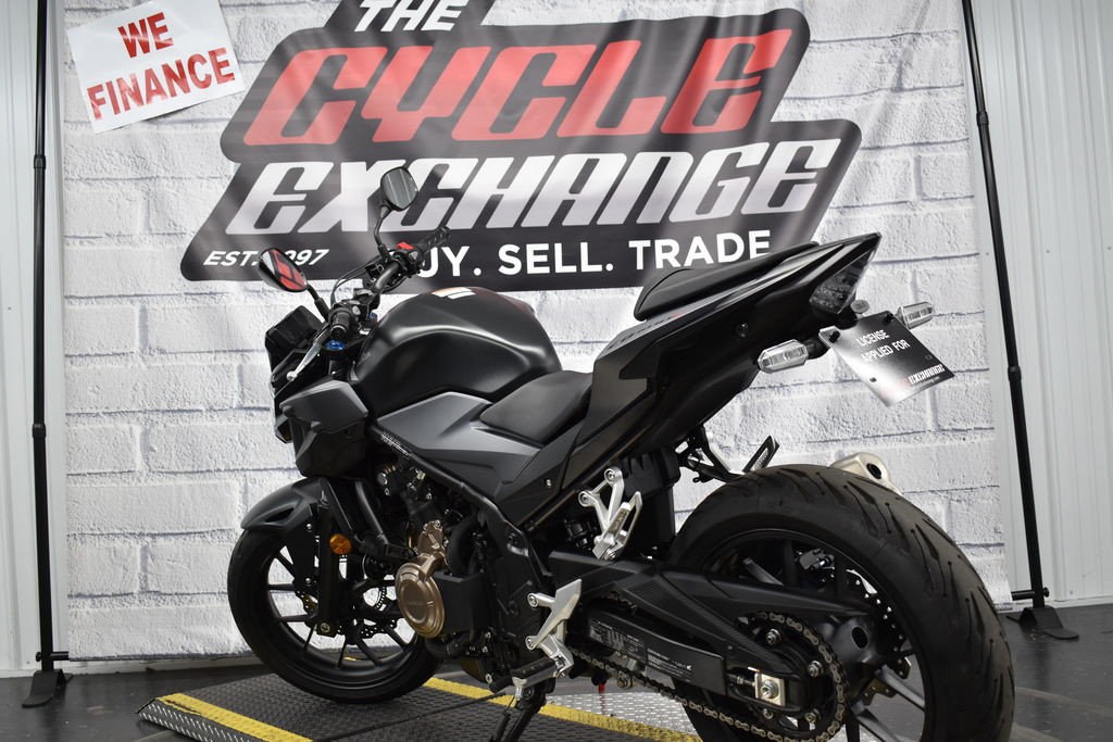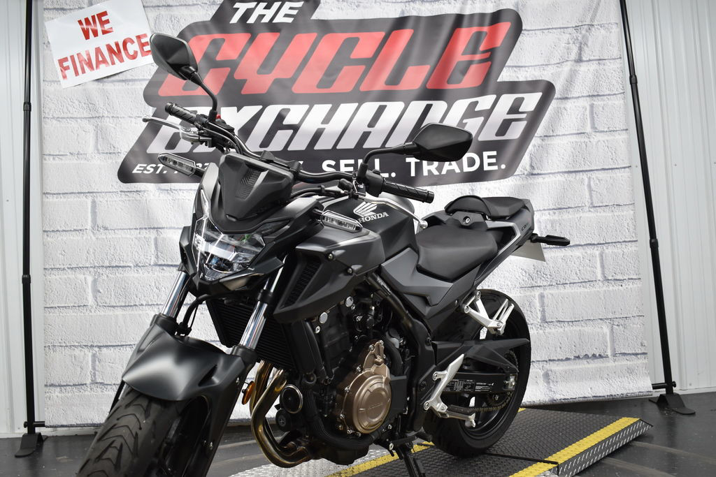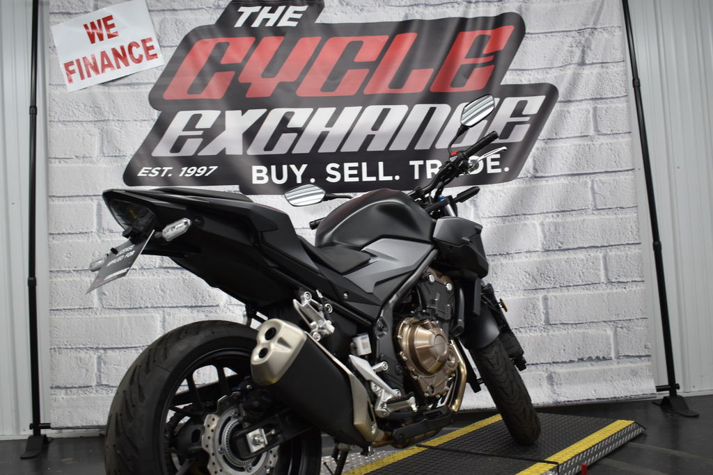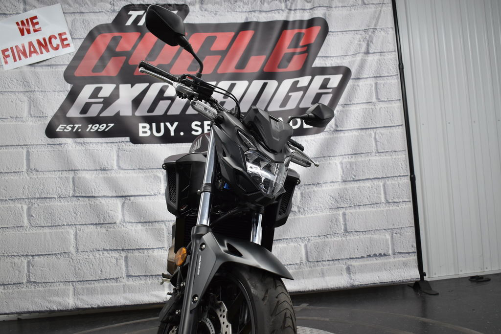 Can one bike fulfill all of a rider’s desires? Well, the Honda CB500F certainly comes close. It’s ideally sized, entirely modern and perfectly priced. Beneath the streetfighter styling lies our proven 500-class twin, delivering the kind of low and mid-range torque that makes everything from relaxed riding to canyon carving a blast. And for 2021, our Anti-Lock Braking System (ABS) comes as a standard feature, for controlled stops in less-than-ideal conditions. Also this year brings a new rich, Darkness Black Metallic paint scheme. Looking for a motorcycle with the right mix of features, performance, and style? Look no further than the CB500F.