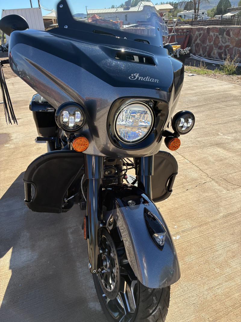 From premium two-tone paint to 400-Watt audio, this limited-edition, Chieftain Elite is fully loaded, and unmistakably on a level of its own. Integrated 400-watt speakers in the front fairing and rear saddlebags deliver surround sound audio with crystal clarity.