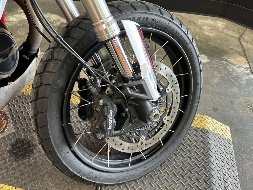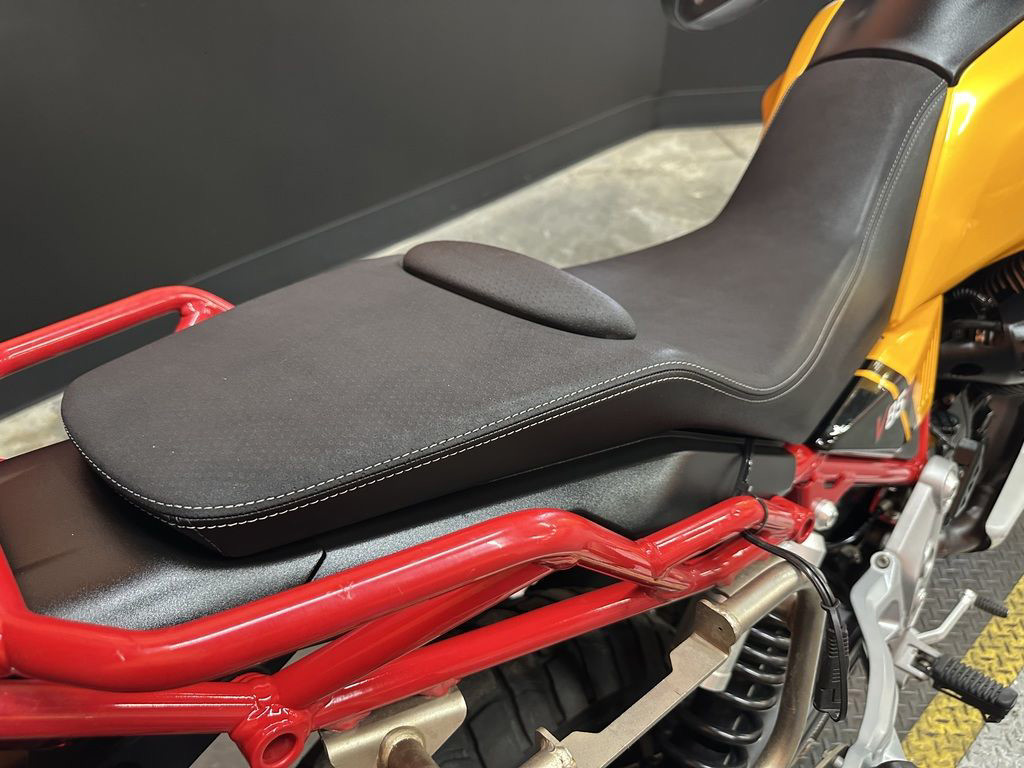 The V85 TT comes in two special colour schemes, both paired with a striking red on the fork and frame. The Giallo Mojave option is the distinctive “look at me” mustard yellow long-associated with the V85 TT, while Rosso Ulura’s combination of red and iridescent white emphasises the shape of the bike. Whichever colour you choose, you’ll cut an intrepid figure on and off road.