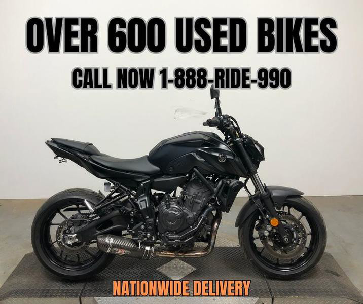 USED YAMAHA MT 07 FOR SALE WITH ONLY 2,997 MILES AND OVER $1,200 IN EXTRAS! CLEAN, CLEAN, CLEAN! SHARP BIKE, ALL BLACKED OUT, FENDER ELIMINATOR KIT WITH INTEGRATED L.E.D. TURN SIGNALS, AND THE YOSHIMURA CARBON FIBER TRI OVAL EXHAUST SOUNDS GREAT! JUST SERVICED AT A FACTORY AUTHORIZED YAMAHA DEALERSHIP, INSPECTED, ALL FLUIDS CHANGED, RUNS STRONG, EVERYTHING WORKS, NEEDS NOTHING! BUY WITH CONFIDENCE!
