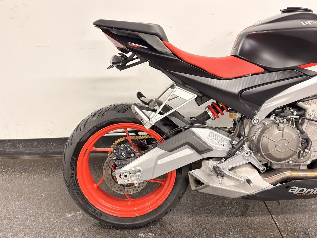 The latest-generation fast and lightweight twin-cylinder forward-facing engine comes courtesy of the mighty Aprilia V4. Its 270-degree crank delivers a truly grunty exhaust note while the final ratios, which are shorter than those of the RS 660, favour rapid take off and response.