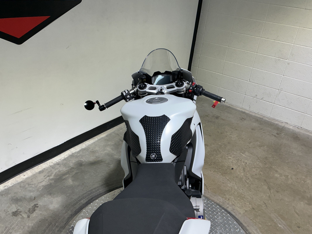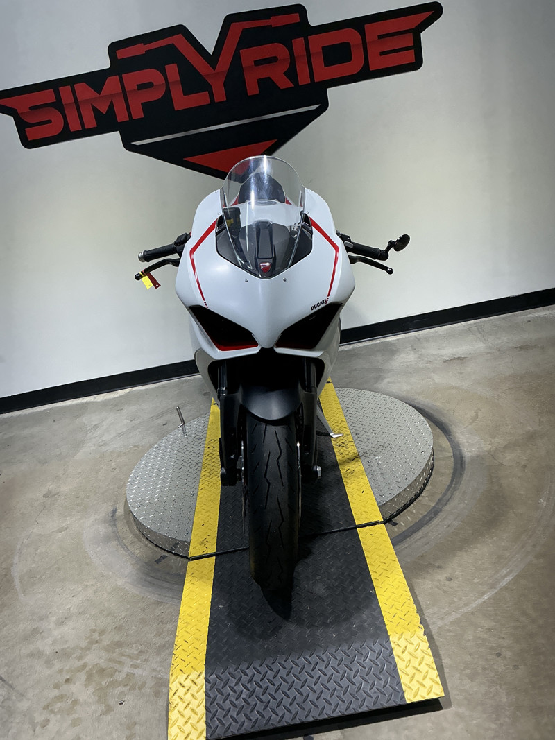 The color range of the Panigale V2 consists of the classic, sporty monochrome Ducati Red and the new White Rosso livery where the purity of Star White Silk is interrupted by the energy of Ducati Red on the rims, the front air inlets and the deflector on the upper half fairing