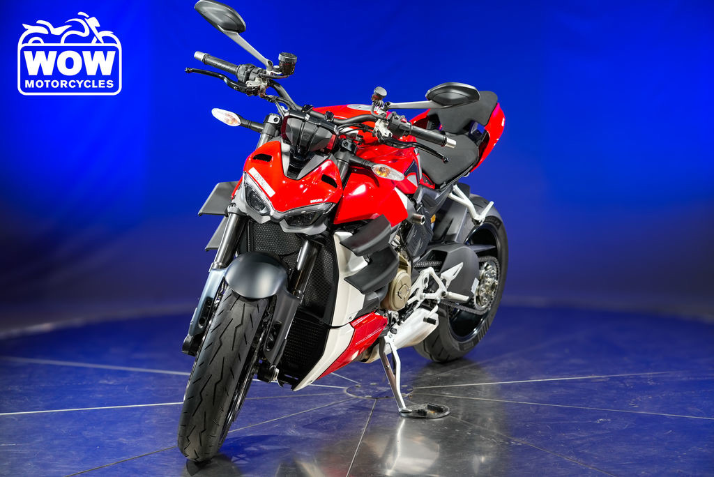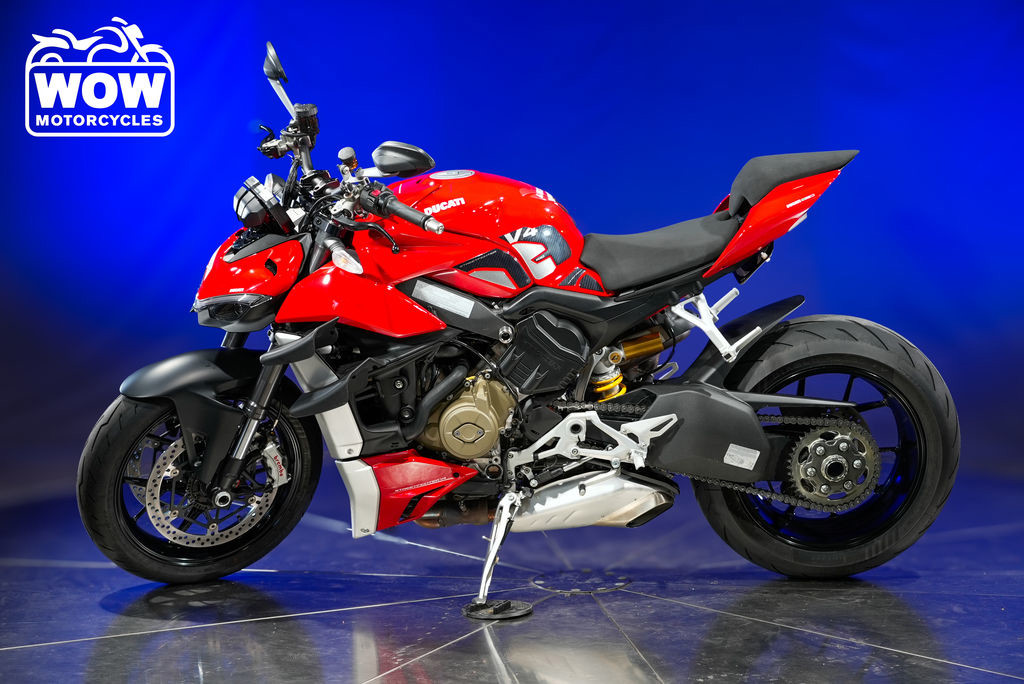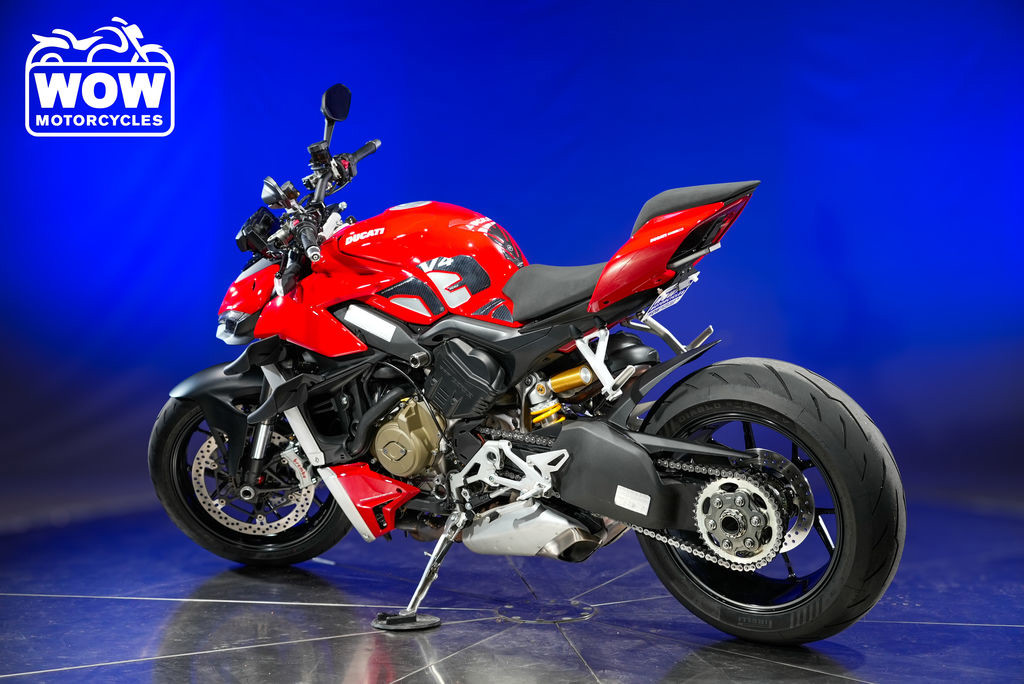 2022 Ducati Streetfighter V4 Unleash pure Italian performance with the 2022 Ducati Streetfighter V4 — a naked sportbike built to dominate the street. Stripped of fairings but packed with superbike DNA, the Streetfighter V4 delivers breathtaking power, razor-sharp handling, and aggressive styling that turns heads everywhere it goes. Powered by Ducati’s legendary 1,103cc Desmosedici Stradale V4 engine, this machine produces explosive acceleration while advanced electronics keep the ride controlled and confidence-inspiring. With features like multiple riding modes, traction control, wheelie control, quick-shifter, and cornering ABS, the Streetfighter V4 blends raw performance with cutting-edge technology. Its upright ergonomics and wide handlebars provide comfort and control without sacrificing the adrenaline rush Ducati is known for. Finished with signature LED lighting and aerodynamic winglets, the Streetfighter V4 looks just as fierce as it rides. Highlights: 1,103cc V4 Desmosedici Stradale engine Advanced Ducati electronics suite Lightweight chassis with aggressive naked styling Brembo high-performance braking system Iconic Italian design and sound The 2022 Ducati Streetfighter V4 is not just a motorcycle — it’s an attitude. Built for riders who demand superbike performance with street-ready comfort.