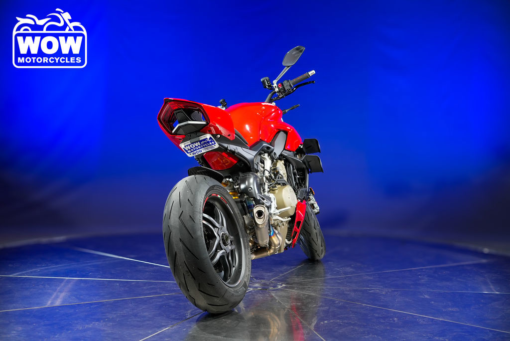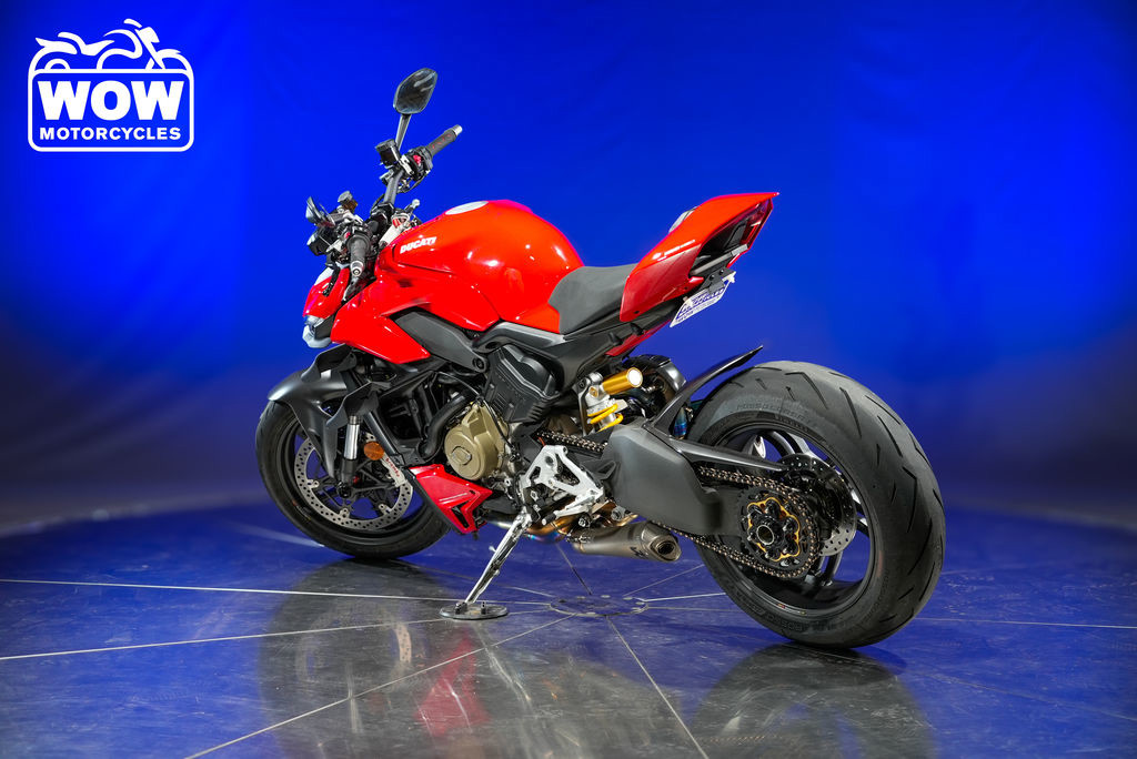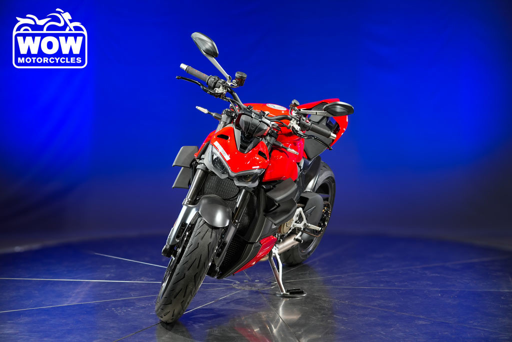 2022 Ducati Streetfighter V4 Unleash pure Italian performance with the 2022 Ducati Streetfighter V4 — a naked sportbike built to dominate the street. Stripped of fairings but packed with superbike DNA, the Streetfighter V4 delivers breathtaking power, razor-sharp handling, and aggressive styling that turns heads everywhere it goes. Powered by Ducati’s legendary 1,103cc Desmosedici Stradale V4 engine, this machine produces explosive acceleration while advanced electronics keep the ride controlled and confidence-inspiring. With features like multiple riding modes, traction control, wheelie control, quick-shifter, and cornering ABS, the Streetfighter V4 blends raw performance with cutting-edge technology. Its upright ergonomics and wide handlebars provide comfort and control without sacrificing the adrenaline rush Ducati is known for. Finished with signature LED lighting and aerodynamic winglets, the Streetfighter V4 looks just as fierce as it rides. Highlights: 1,103cc V4 Desmosedici Stradale engine Advanced Ducati electronics suite Lightweight chassis with aggressive naked styling Brembo high-performance braking system Iconic Italian design and sound The 2022 Ducati Streetfighter V4 is not just a motorcycle — it’s an attitude. Built for riders who demand superbike performance with street-ready comfort.