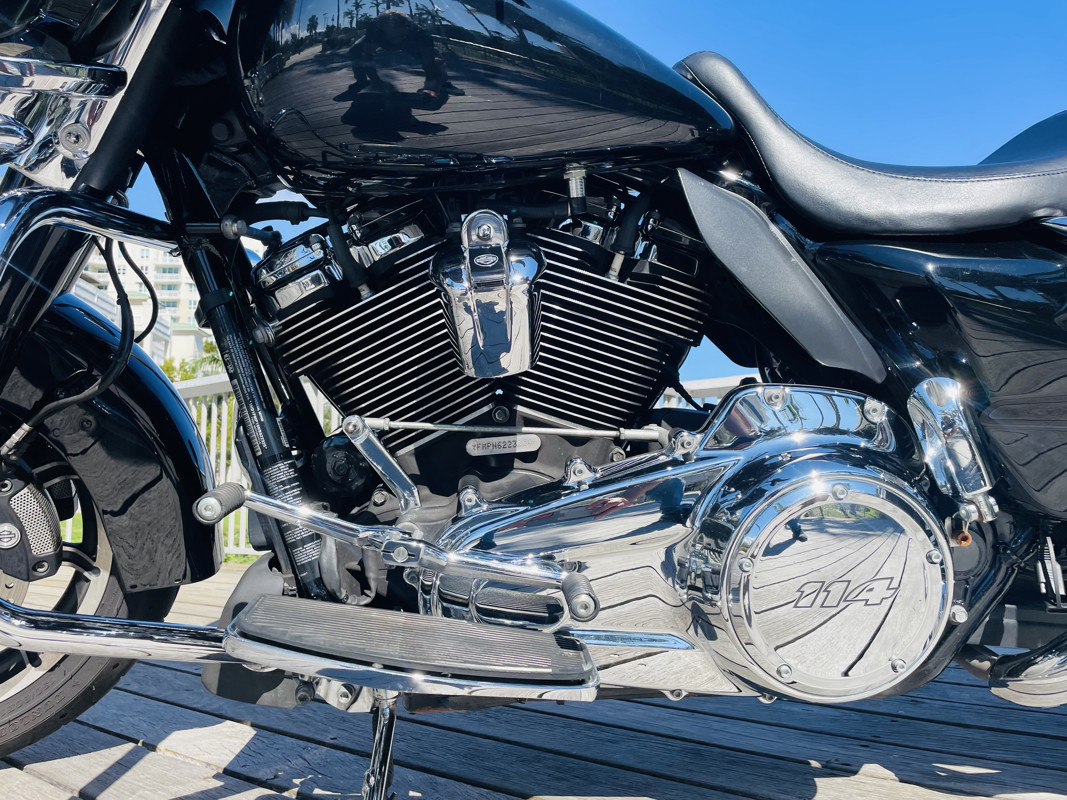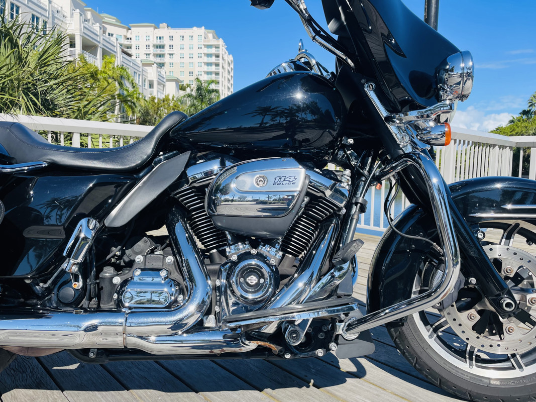 This bike was produced as a Police Interceptor bike with Interceptor 114ci motor and Pursuit transmission. The bike was only used for 18K miles by a Florida Police department from 06/22 to 02/25 then converted to civilian use. It is in excellent condition with very minor flaws. Chrome is excellent, tires are good (07/24) and quick connects added to add a tour pack or backrest for the passenger. This is a $25,000 Electra Glide with a motor only issued to Police Departments.
