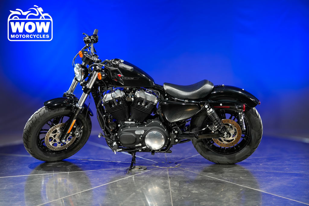 Heavy-hitting fat tire style with an iconic peanut tank and bulldog stance. The Forty-Eight features fat tires on a skinny bike with an iconic peanut tank that made its debut in 1948. Designed with signature bulldog stance and 1200cc of torque, this Harley-Davidson Sportster model delivers classic cruiser attitude with modern performance, perfect for urban cruising and making a bold statement on the road. DIMENSIONS Length: 85.2 in. (2,165 mm) Overall Width: 32.9 in. (835 mm) Overall Height: 43.3 in. (1,100 mm) Seat Height, Laden: 26.2 in. (665 mm) Seat Height, Unladen: 28 in. (710 mm) Static Ground Clearance: 4.3 in. (110 mm) Rake (steering head) (deg): 30.2 Fork Angle (deg): 28.7 Trail: 5.3 in. (135 mm) Wheelbase: 58.9 in. (1,495 mm) Tires, Type: Michelin Scorcher “31? front and rear Tires, Front Model: Scorcher “31? Tires, Front Specification: 130/90B16 73H Tires, Rear Model: Scorcher “31? Tires, Rear Specification: 150/80B16 77H Fuel Capacity: 2.1 gal. (7.9 l) Reserve Fuel Capacity, Fuel Injection (warning light): 0.65 gal. (2.5 l) Oil Capacity (w/filter): 2.8 qt. (2.6 l) Transmission Capacity: 1 qt. (1 l) Weight, As Shipped: 545 lb. (247 kg) Weight, In Running Order: 556 lb. (252 kg) Gross Vehicle Weight Rating: 1,000 lb. (454 kg) Gross Axle Weight Rating, Front: 335 lb. (152 kg) Gross Axle Weight Rating, Rear: 665 lb. (302 kg) Luggage Capacity -Volume: N/A ENGINE Engine: Air-cooled, Evolution Valves: Pushrod-operated, overhead valves with hydraulic, self-adjusting lifters; two valves per cylinder Bore: 3.5 in. (88.9 mm) Stroke: 3.8 in. (96.8 mm) Displacement: 73.4 cu in (1,200 cc) Compression Ratio: 10:1 Fuel System: Electronic Sequential Port Fuel Injection (ESPFI) Air Cleaner: Paper cartridge type Exhaust: Black, staggered exhaust with slash-cut mufflers Lubrication System: Dry-sump DRIVETRAIN Primary Drive: Chain, 38/57 ratio Final Drive: Belt, 29/68 ratio Clutch: Multi-plate, wet Transmission: 5-speed