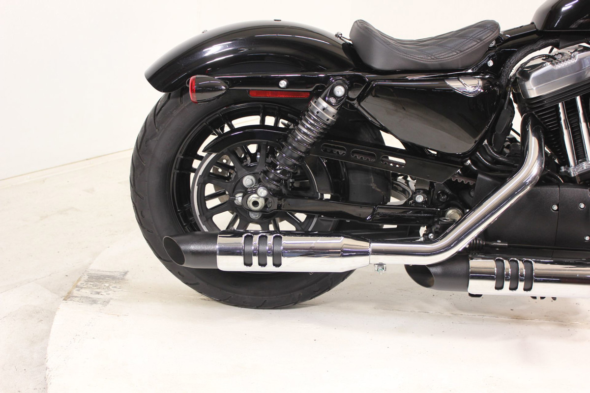 Heavy-hitting fat tire style with an iconic peanut tank and bulldog stance. Custom Heated Grips and Low Mounted Mirrors and extremely low miles! Considered a bike that even the guys with the Street Glide and Road Glide owners wouldn't mind having in their inventory for a fun day in the corners or shooting across town.