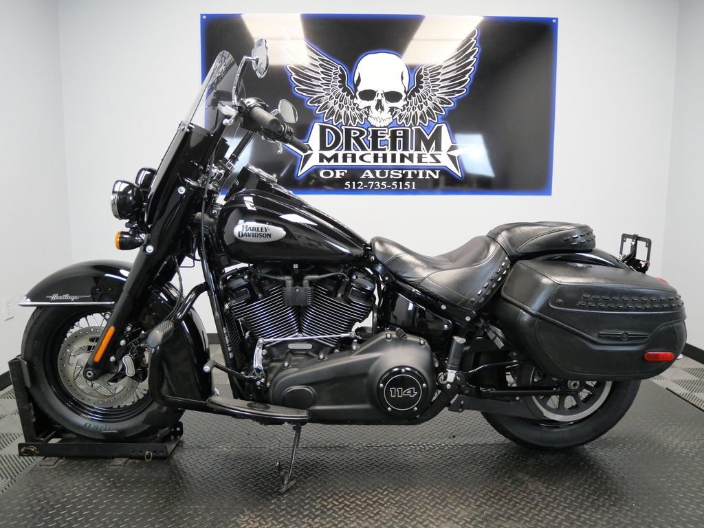 *BOOK VALUE IS $14,523 SHIPPING, LEASING, FINANCING AND EXTENDED WARRANTY MAY BE AVAILABLE! YOU ARE LOOKING AT A 2022 HARLEY DAVIDSON HERITAGE CLASSIC (FLHCS) WITH 26,651 MILES ON IT. IT IS VIVID BLACK IN COLOR AND POWERED BY A 18868CC (114") FUEL INJECTED MILWAUKEE EIGHT ENGINE AND 6 SPEED TRANSMISSION. THE BIKE COMES WITH ABS BRAKES, CRUISE CONTROL, 3 KEYS, 2 FOBS, AND FACTORY SECURITY SYSTEM. A BLACK ENGINE GUARD ($214.95) AND CHROME MIRRORS ($89.95) HAVE BEEN ADDED TO THE BIKE. THERE ARE NO SCRATCHES, DENTS, OR DINGS THAT I CAN FIND WITH THE EXCEPTION OF SMALL TEARS ON THE RIGHT SADDLEBAG. THE CHROME AND ALUMINUM ARE IN GOOD CONDITION WITH THE EXCEPTION OF TOUCH UPS ON THE ENGINE GUARD AND SMALL IMPRESSION AND SCRATCHES ON THE PASSING LAMP TRIM RING. THE TIRES HAVE GOOD TREAD LEFT ON THEM.