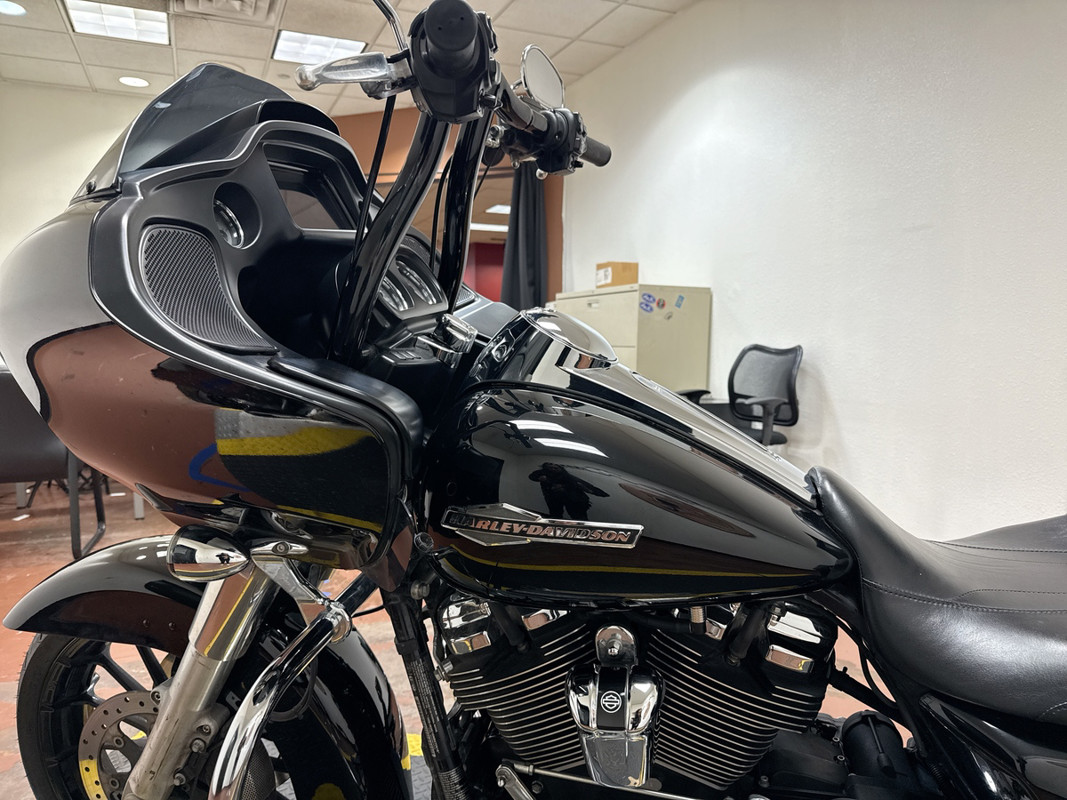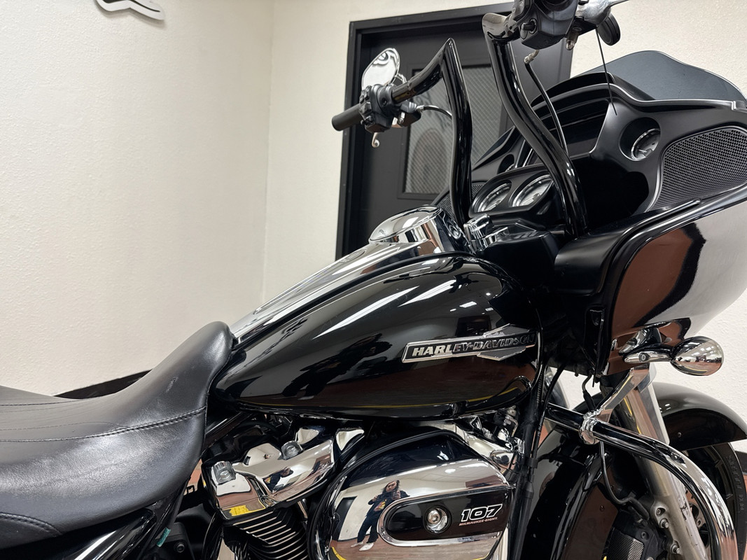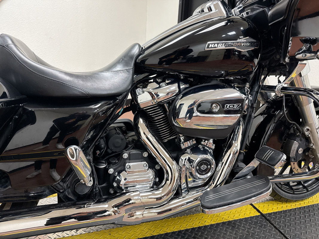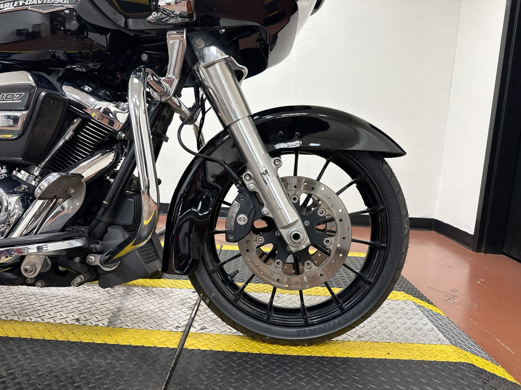 The FLTRX Road Glide is powered by the Milwaukee-Eight 114ci engine, delivering exceptional power and torque for an exhilarating ride. The sleek Vivid Black finish, paired with chrome accents, creates a bold and aggressive look that stands out. With its iconic shark-nose fairing, you’ll enjoy superior wind protection and a smooth ride, whether you’re cruising through the city or embarking on a long-distance tour.