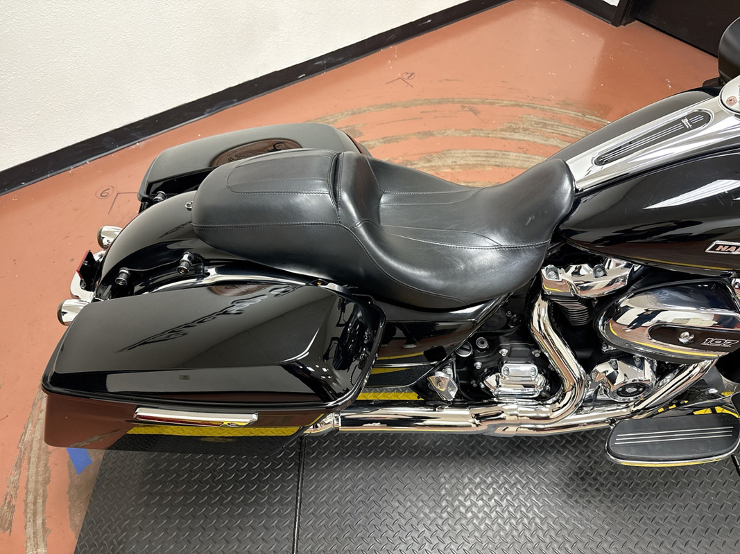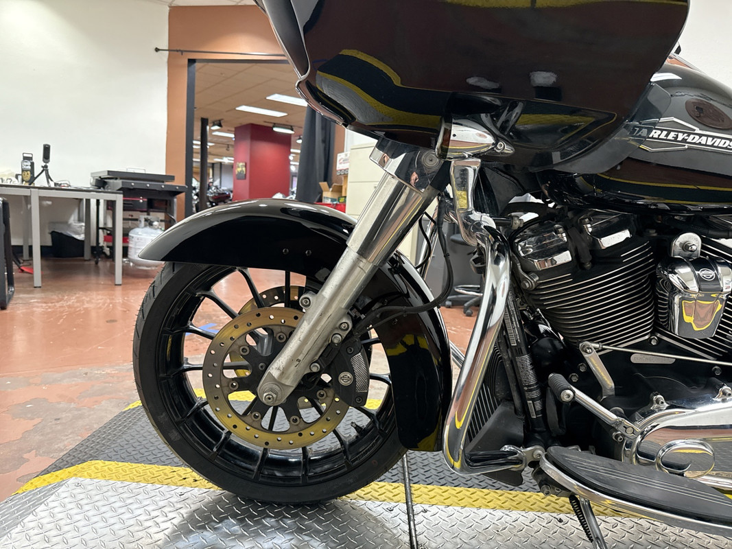This bike boasts a range of impressive upgrades, including a custom black front wheel and smoked LED passing lights that enhance both aesthetics and visibility. The engine guard and highway pegs provide added comfort and control, while the Screamin’ Eagle air intake and Rinehart slip-ons deliver a powerful sound and improved performance. The stretched saddlebags offer ample storage for your gear, making this Road Glide the perfect companion for your next adventure. Our thorough 78-point inspection confirms that this bike is in excellent condition, with tires and brakes both showing strong life. If you’re looking for a fully loaded touring bike that excels in comfort and style, this Road Glide is the one for you.