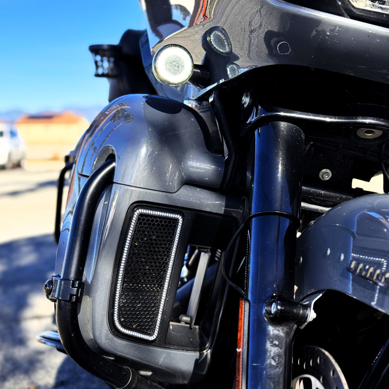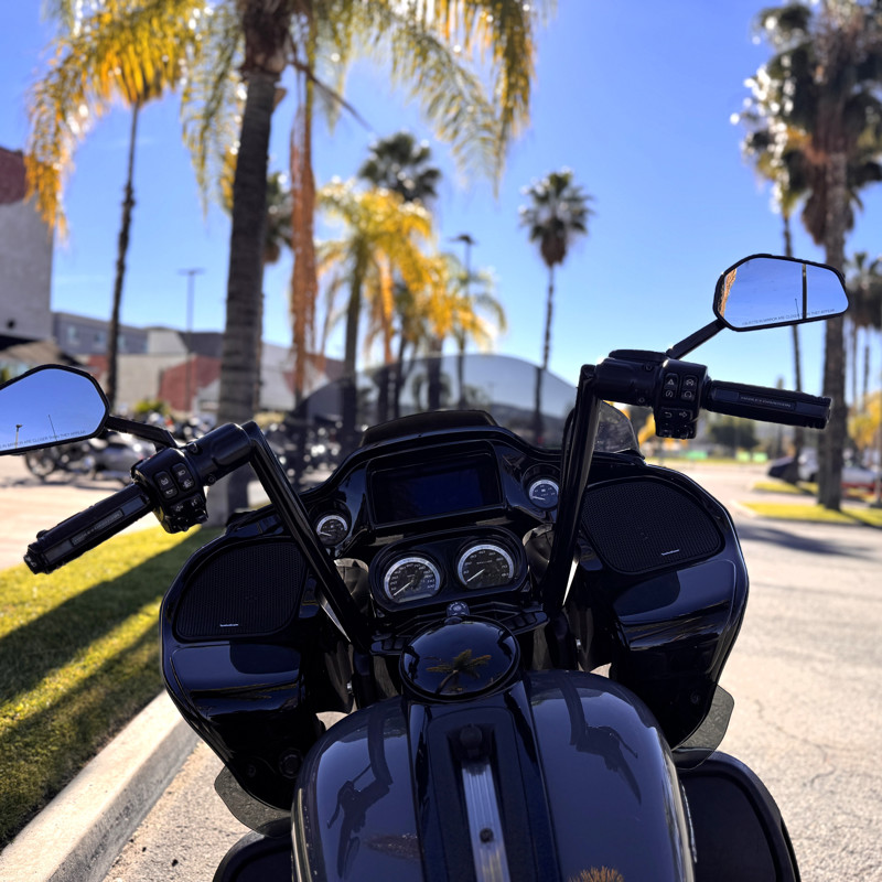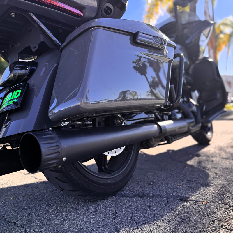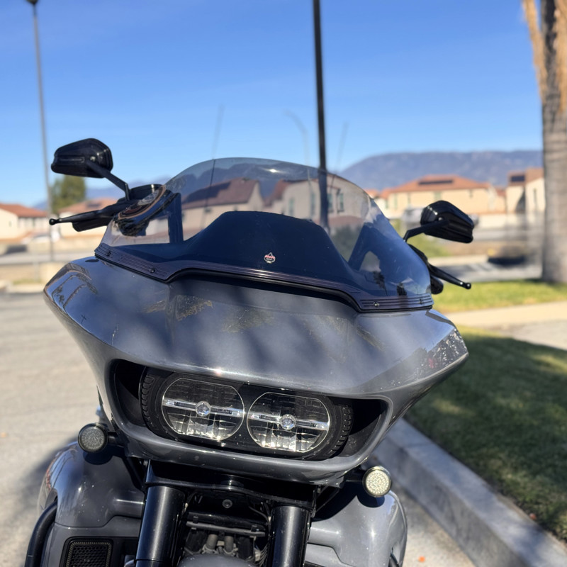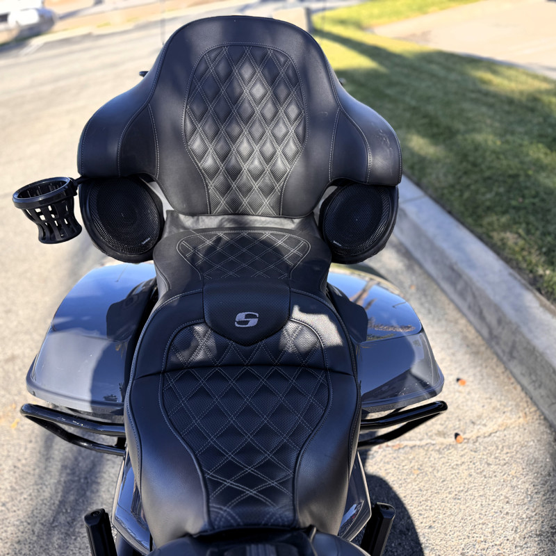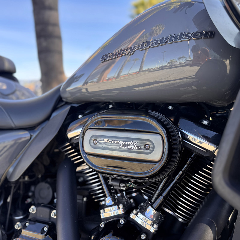 Saddlemen seat, Screamin’ Eagle air cleaner, custom exhaust, Carlini bars, custom grips & mirrors, KlockWerks windshield, passenger cupholder, and LED lower vent lights.